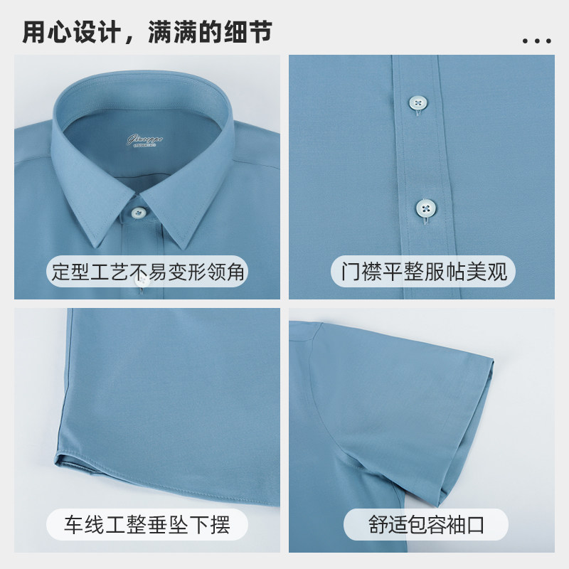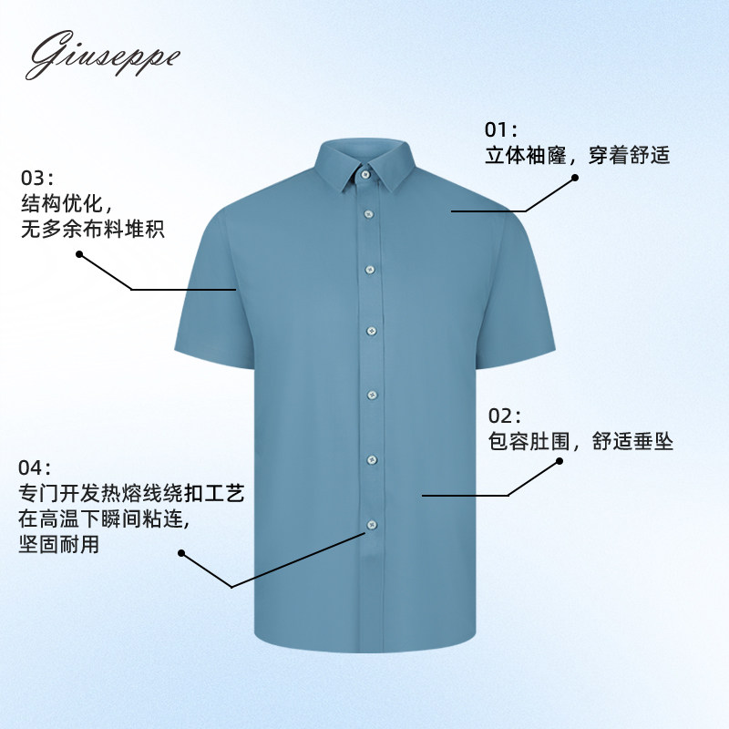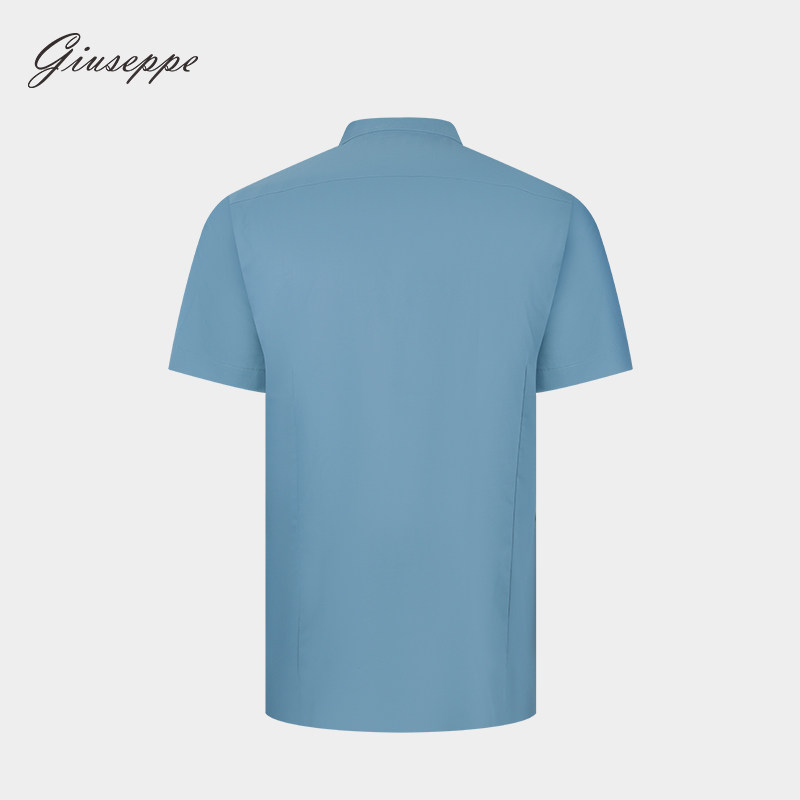【商场同款】乔治白春秋男士短袖衬衫休闲微弹含桑蚕丝纯色衬衣