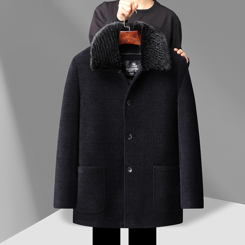 爸爸冬装外套雪尼尔中长款羽绒棉服中老年人男夹克父亲秋冬季大衣