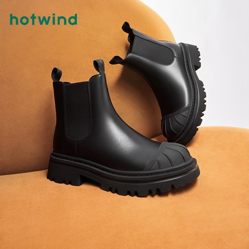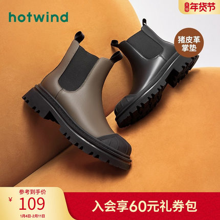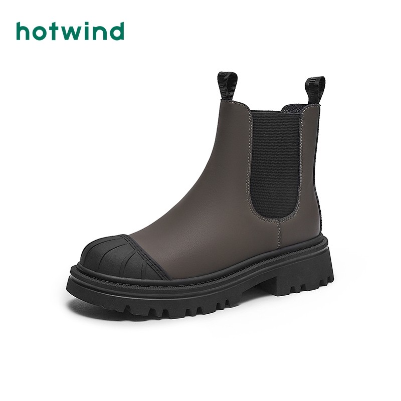 热风春春款女士时尚ins潮短筒切尔西靴拼色保暖休闲靴女