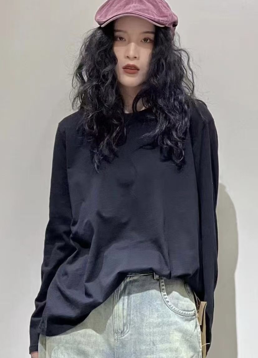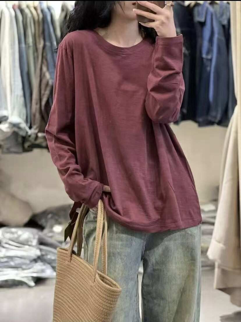 原创棉麻 老钱风100%竹节棉长袖大码打底T恤313(胸围125衣长65)