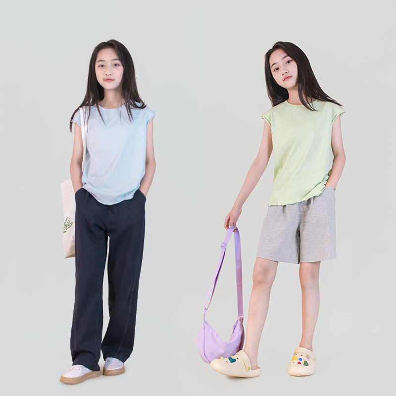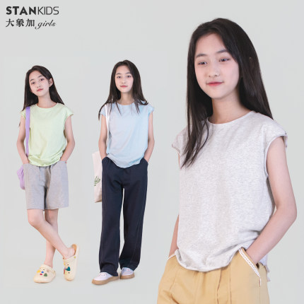 跑量!全棉女童纯色圆领无袖T恤2025夏季中大童纯棉背心中小学生