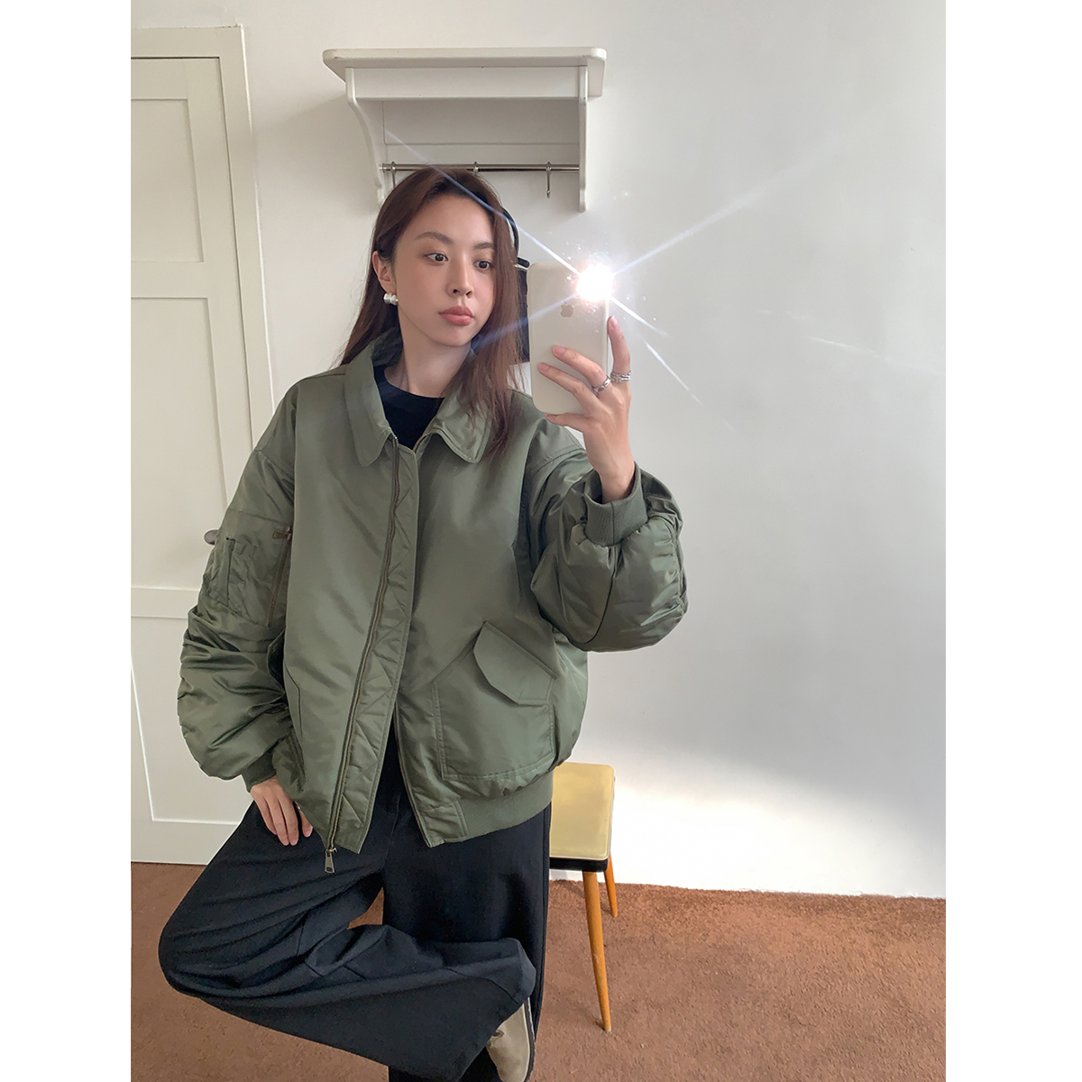 SIXI四喜家 重磅手作 廓形飞行员夹克棒球服女秋冬加厚夹棉外套