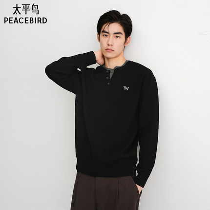 太平鸟男装亨利领休闲毛衣