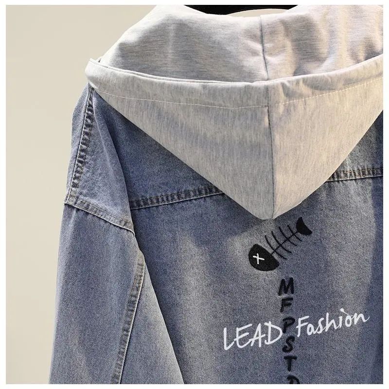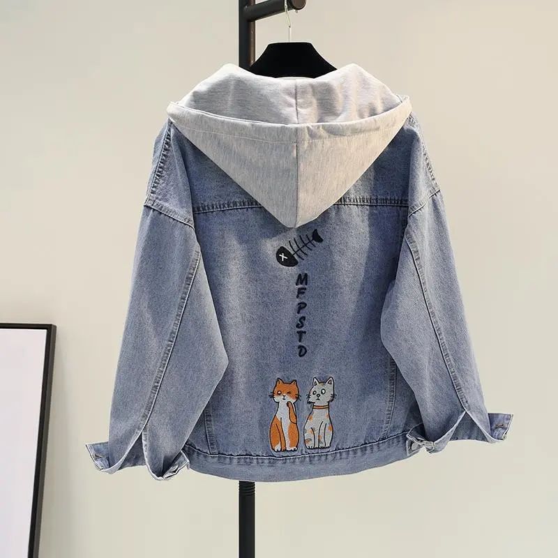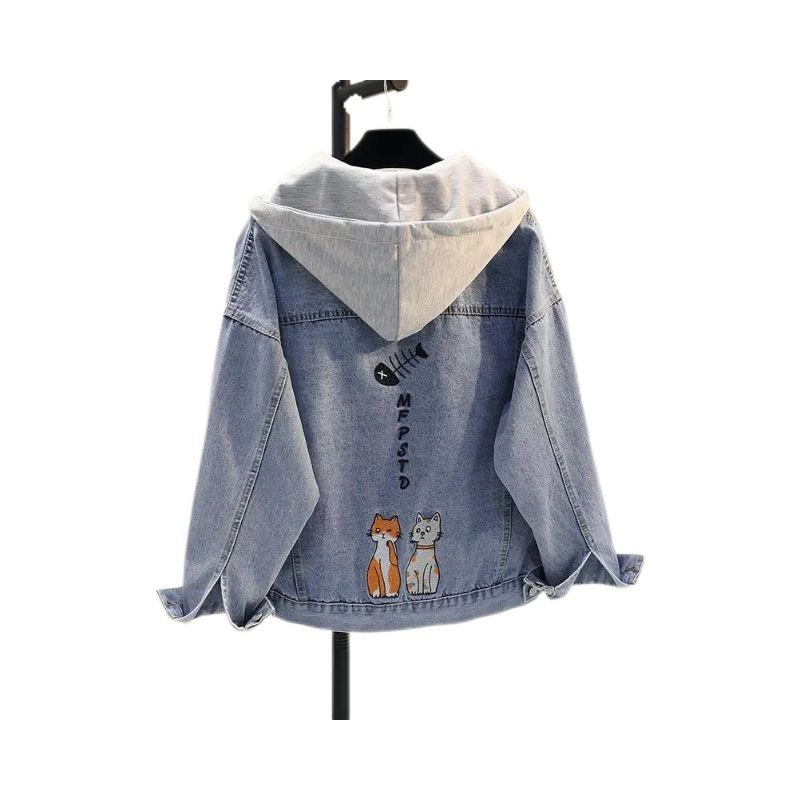 女童春秋季新款牛仔衣中大童韩版宽松休闲外套儿童装带帽刺绣上衣