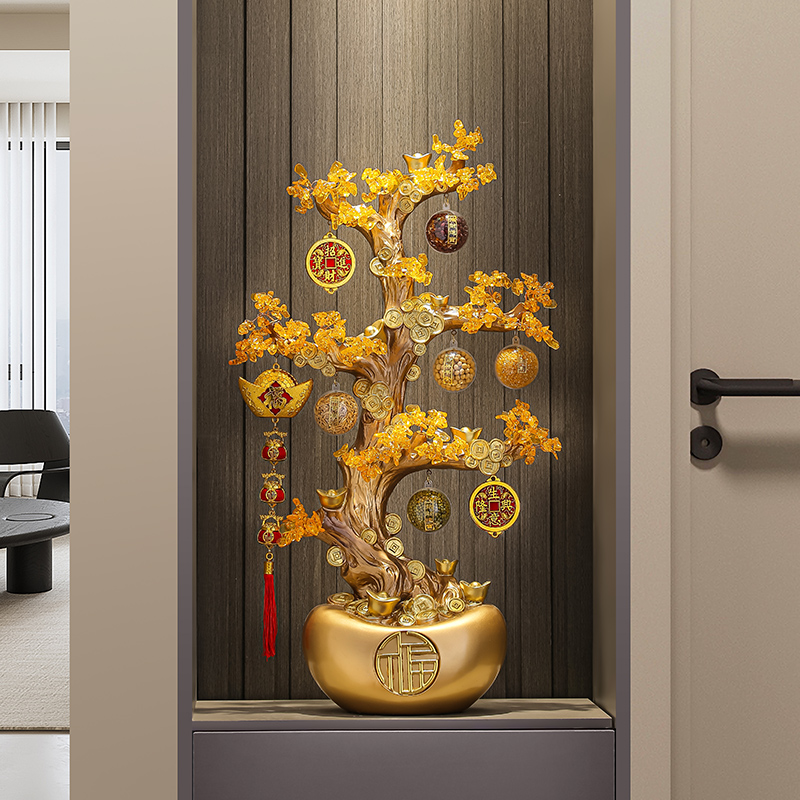 入户玄关发财树落地摆件客厅电视柜高档搬家乔迁礼物招财开业装饰