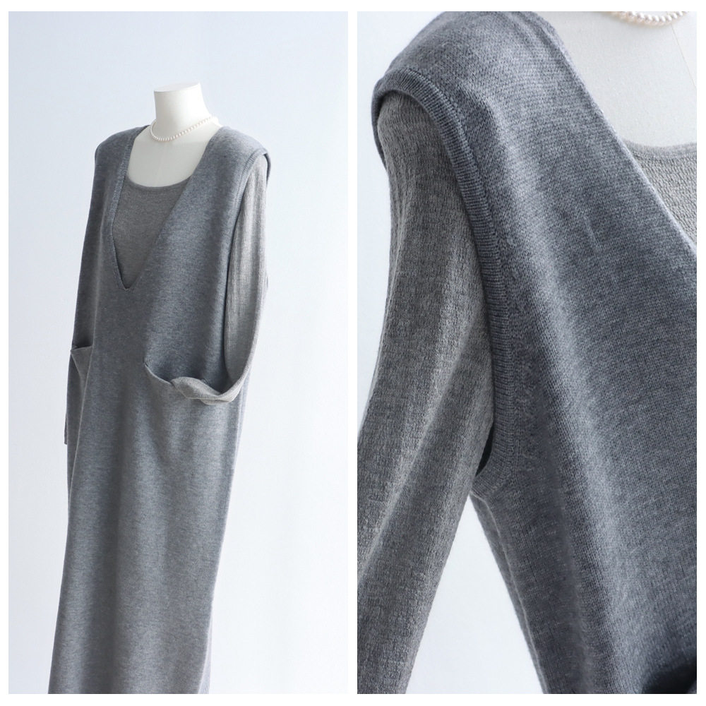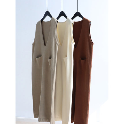 莱赛尔羊毛混纺大V领连衣裙叠穿宽松直筒无袖背心裙冬季休闲长裙