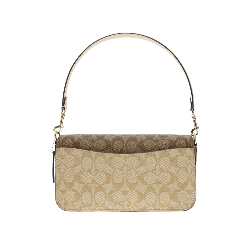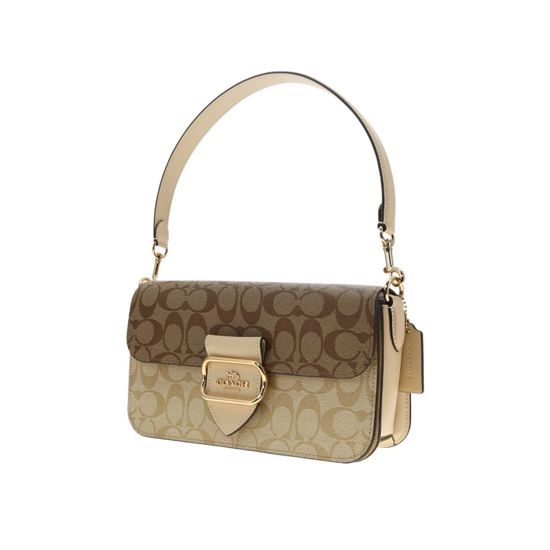 【自营】COACH/蔻驰女士PVC配皮单肩斜挎手提包棕色卡其色拼色