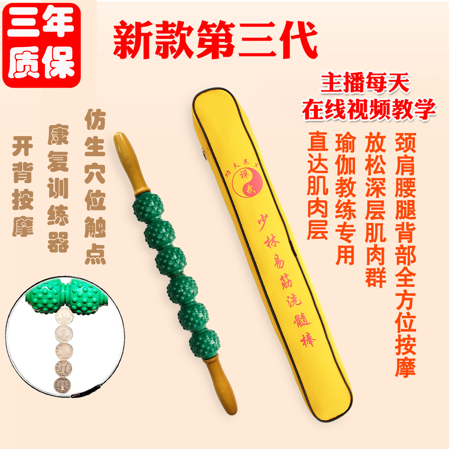 正品少林易筋洗髓棒磁疗棒经络滚轮按摩擀筋膜腰背健身磁力瑜伽棒