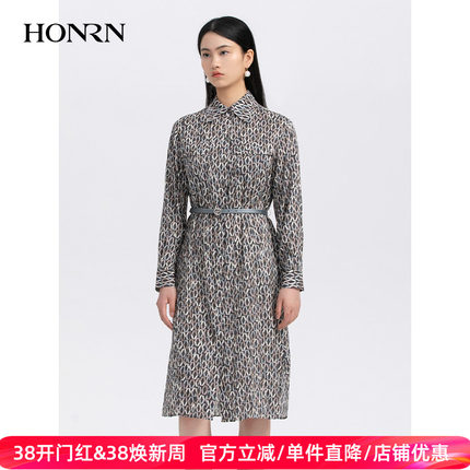 HONRN/红人气质桑蚕丝真丝收腰显瘦设计感连衣裙女早秋HH33OL280