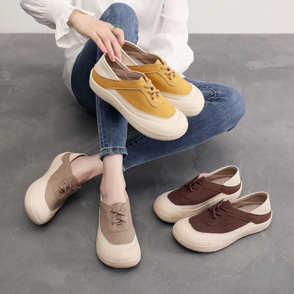 厚底懒人乐福鞋防滑帆布鞋女款2025春秋新款两穿运动鞋老北京布鞋