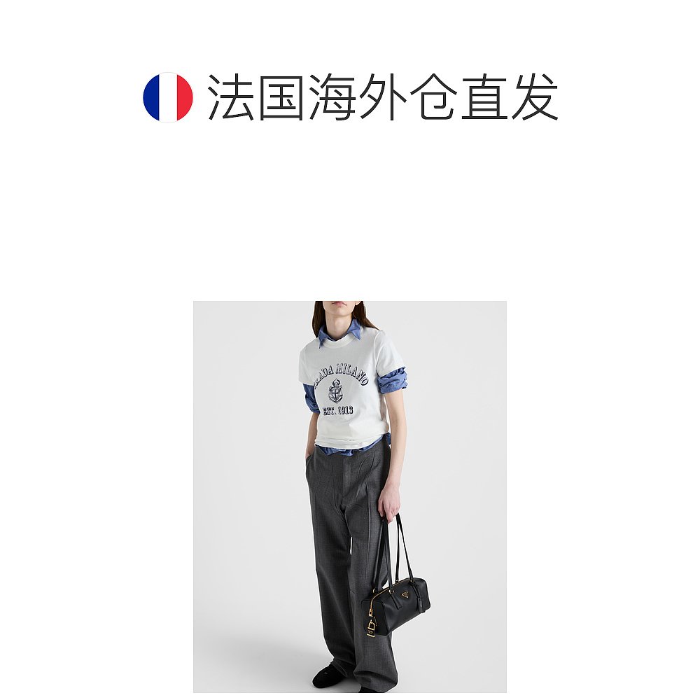 欧洲直邮PRADA (2025) 印花针织T恤短袖普拉达上衣女装