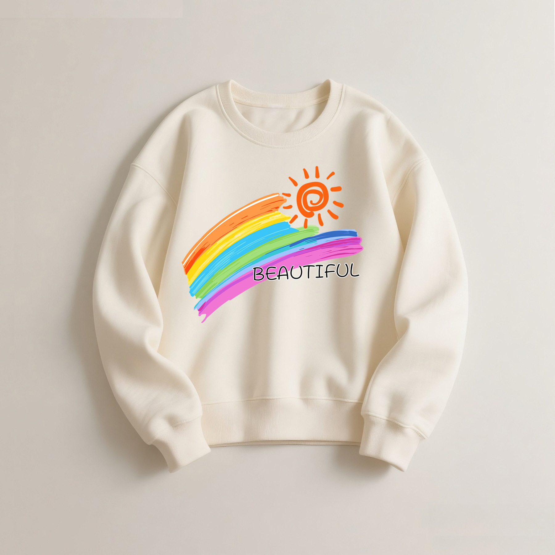 学校班服杏色儿童卫衣3-18岁学生秋冬季运动会活动服装彩虹亲子款