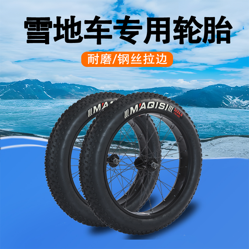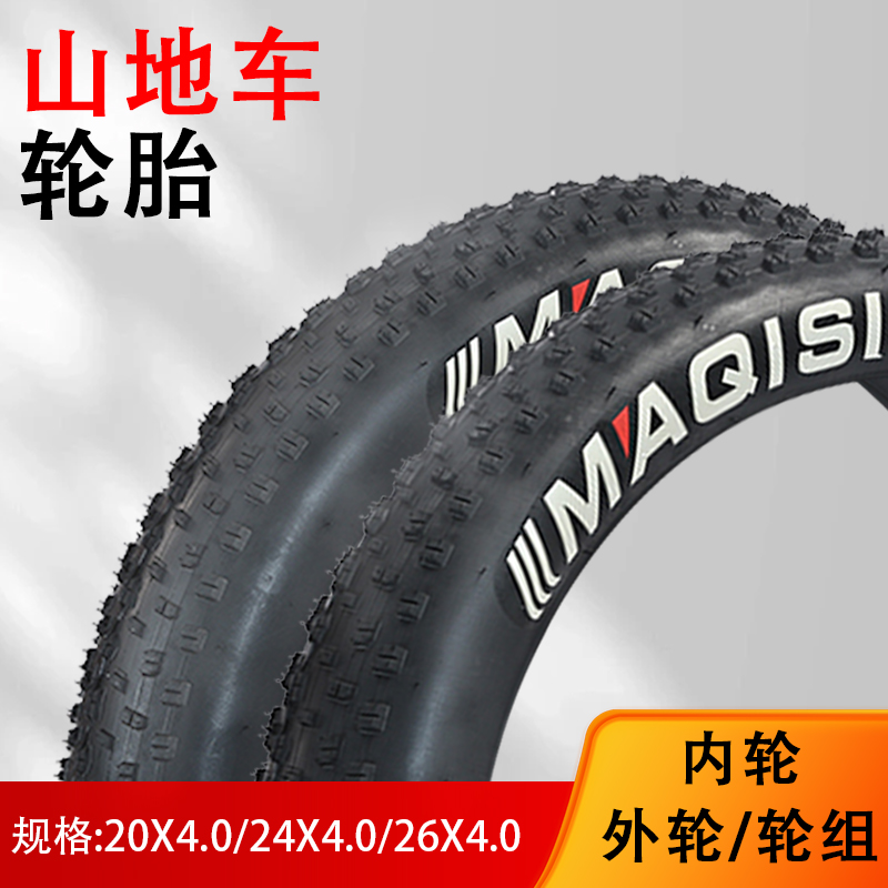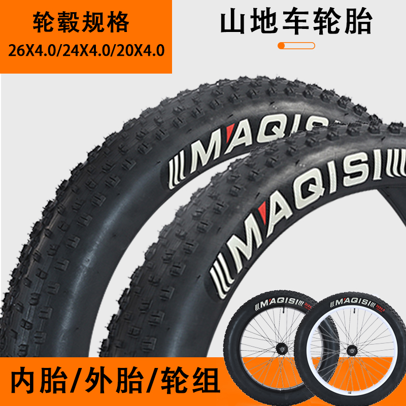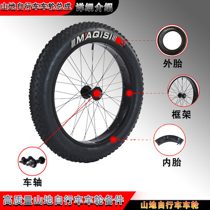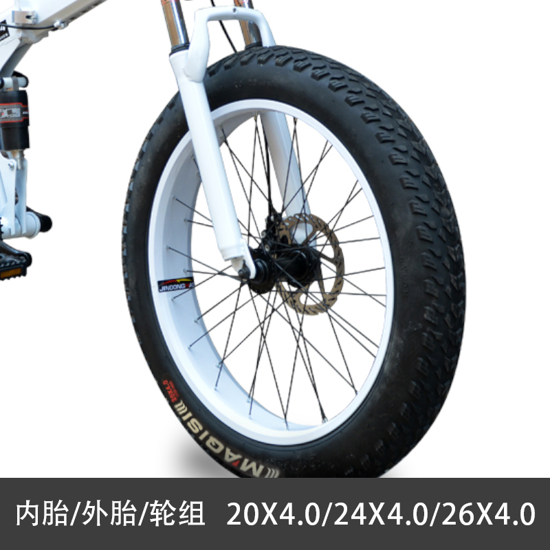 大轮胎雪地车粗宽山地自行车车轮26寸2420寸4.0内胎外胎车圈轮组