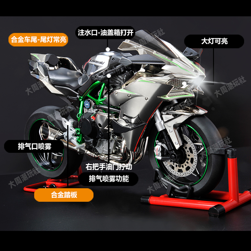新款川崎h2r可点火摩托合金模型