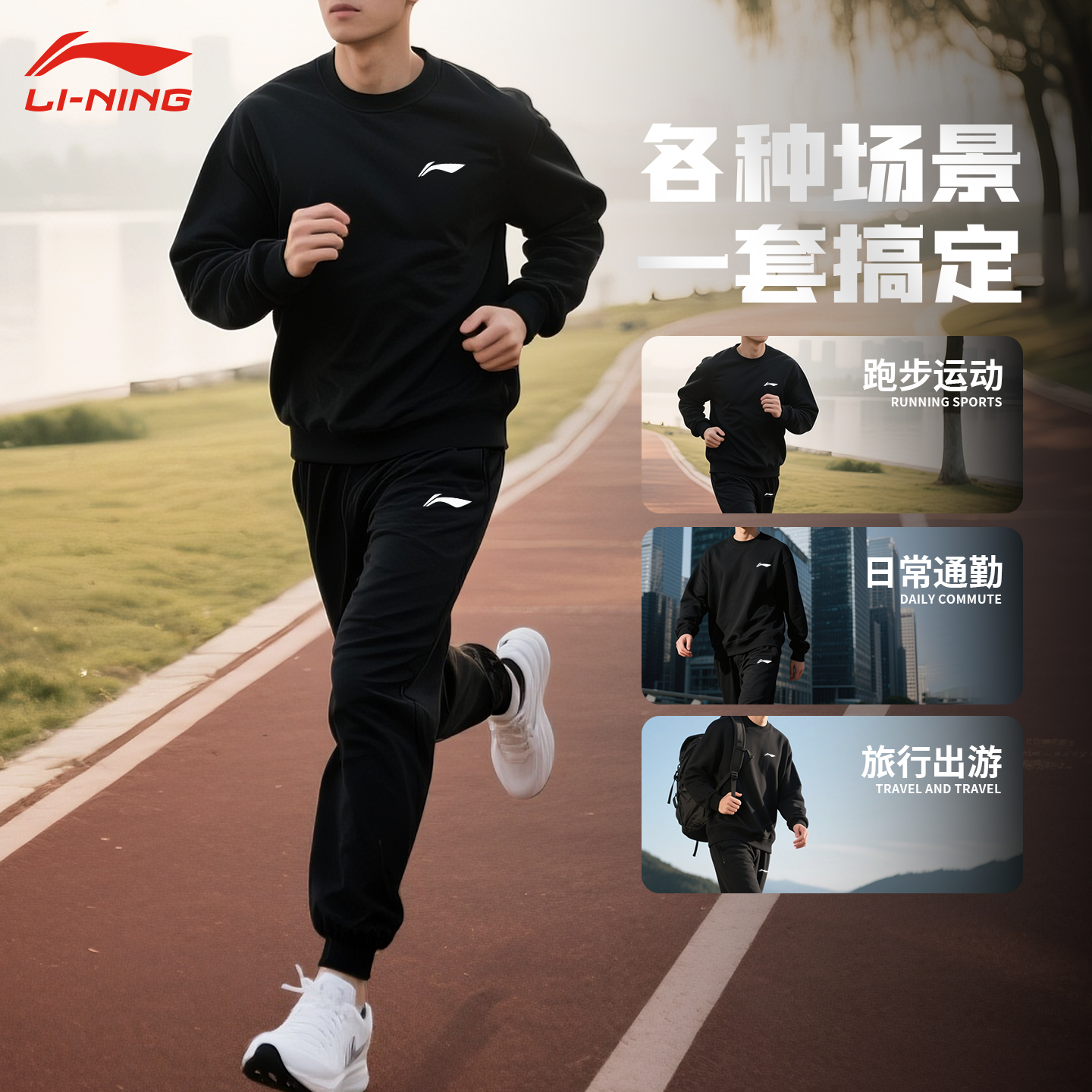 李宁运动服套装男士卫衣卫裤秋冬季加绒新款跑步篮球锻炼上衣外套