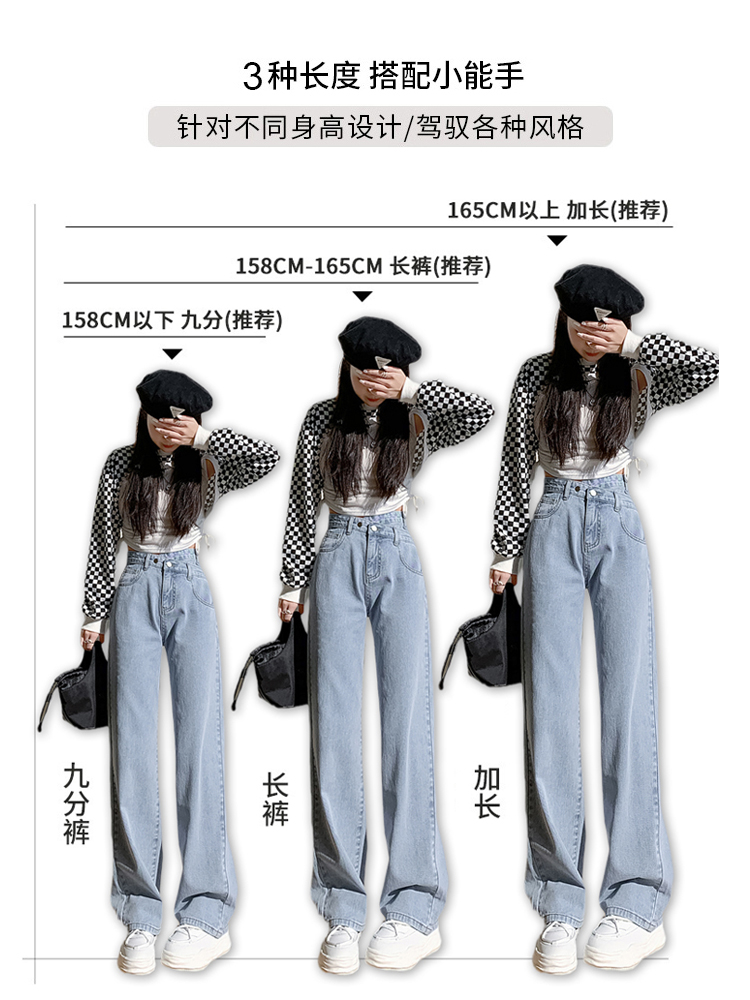 高腰阔腿牛仔裤女直筒宽松夏薄款