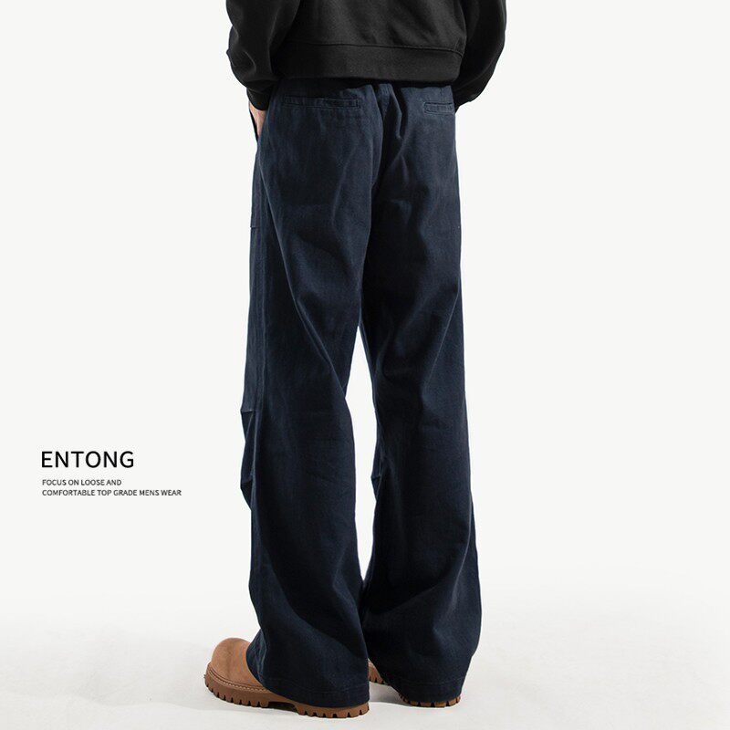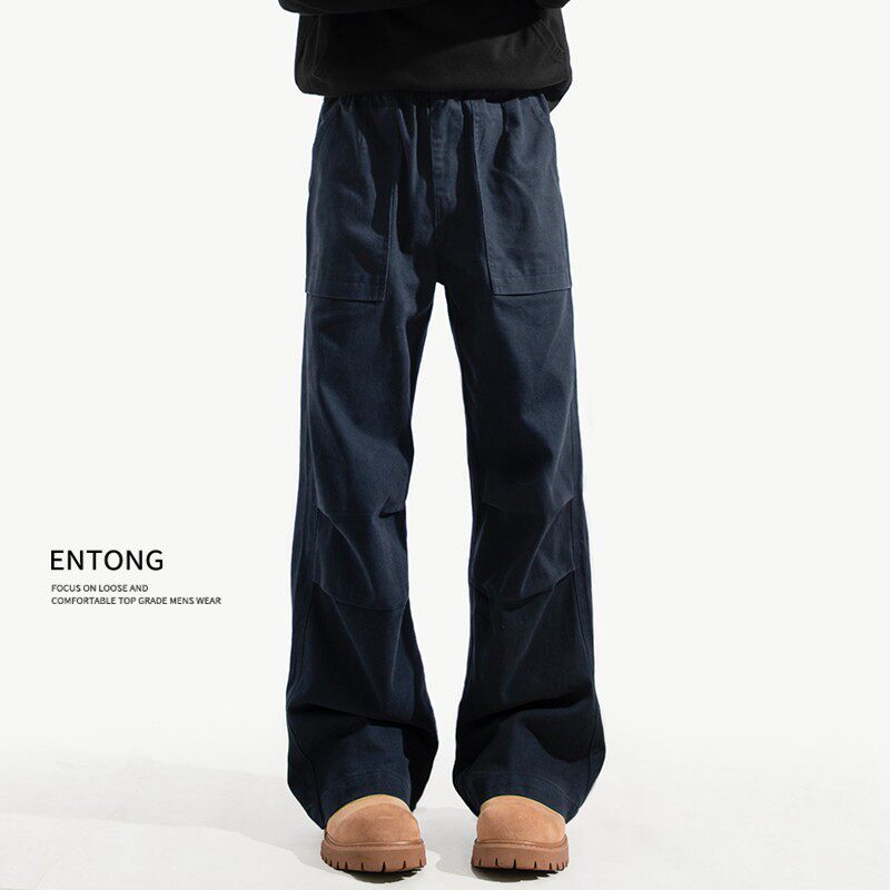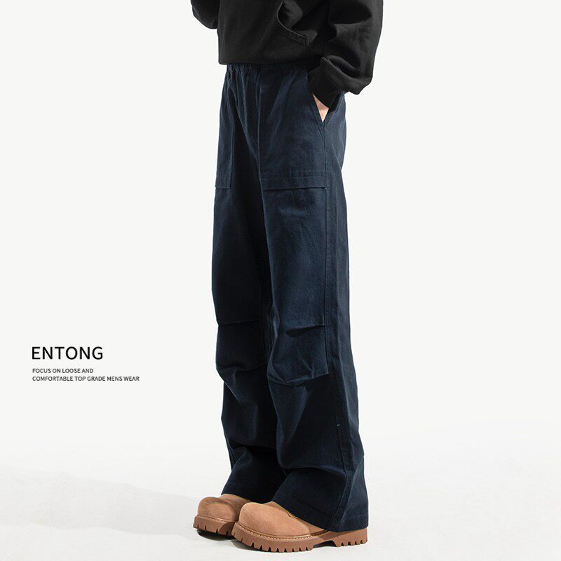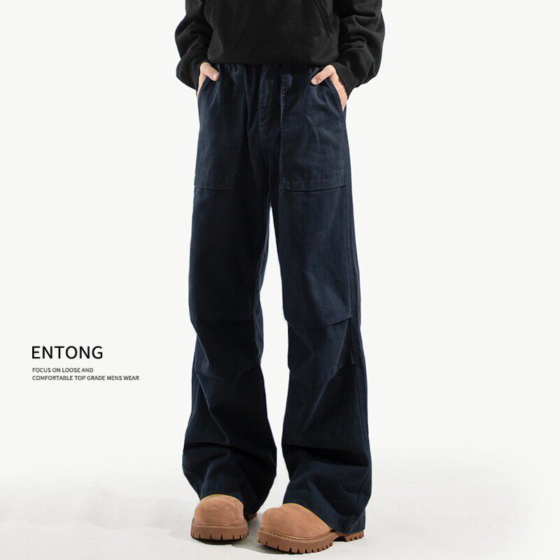 Entong美式大口袋复古工装裤子男生春秋季新款宽松直筒加绒休闲裤