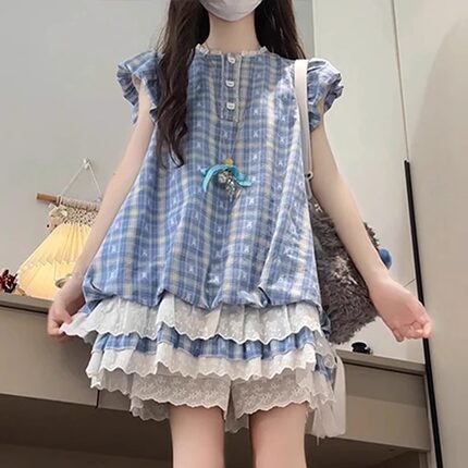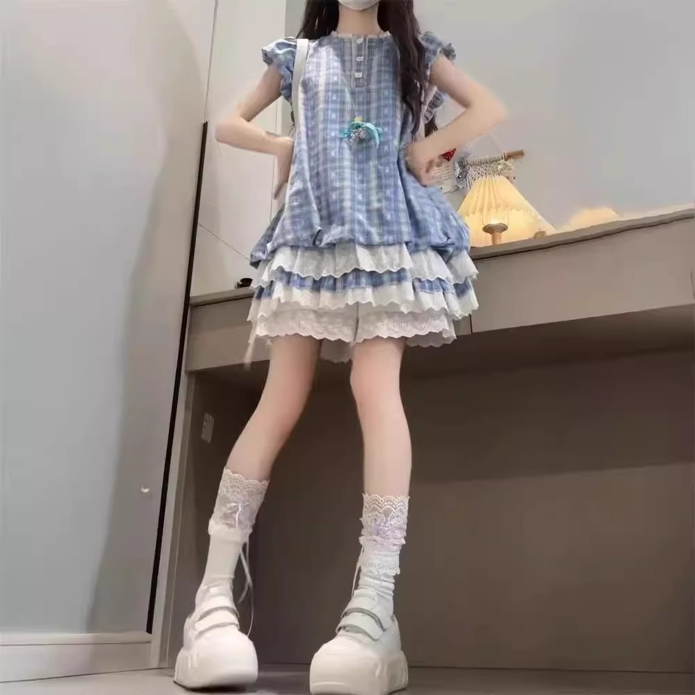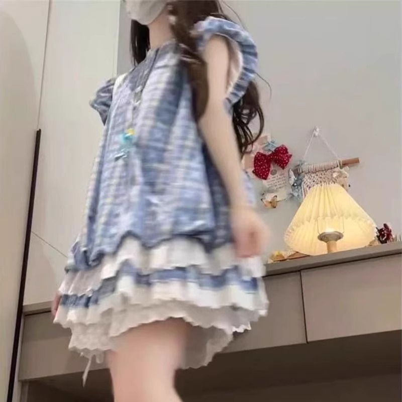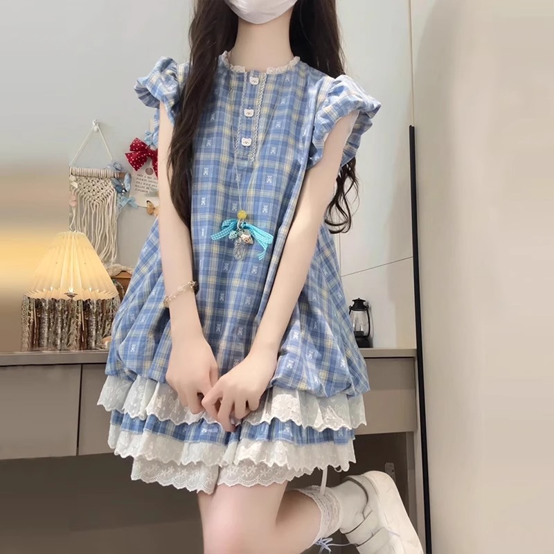 女童连衣裙2025新款夏季儿童洋气时髦格子蛋糕裙中大童女孩公主裙