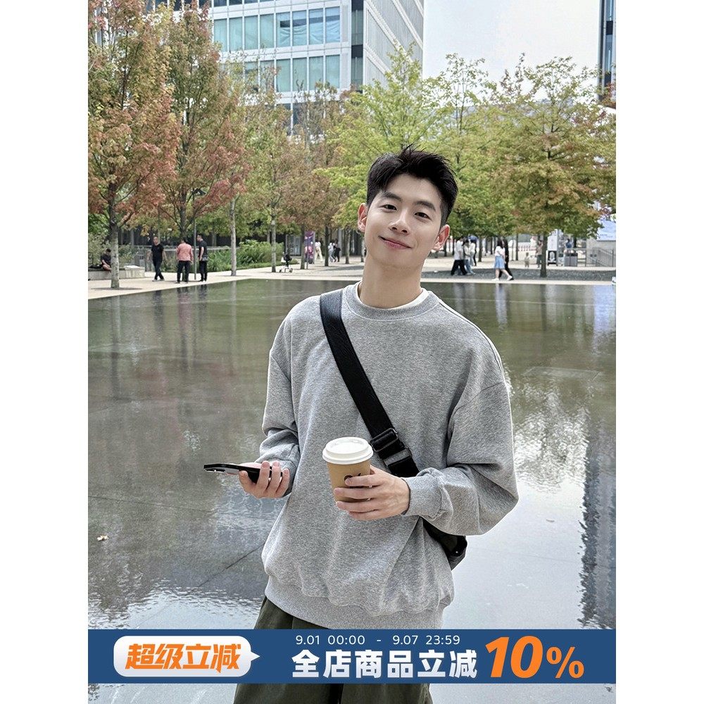 420g重磅灰色基础圆领卫衣男生2025春秋季男款套头外套长袖内搭