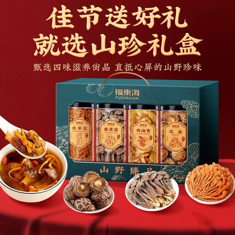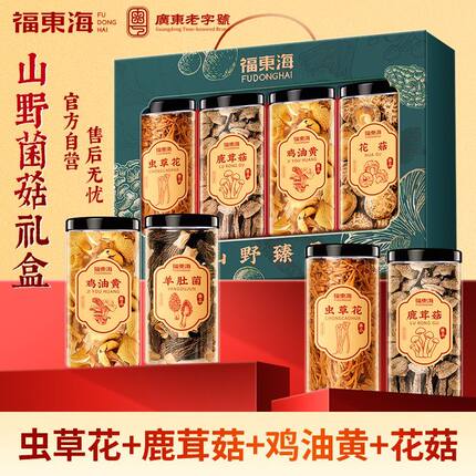 福东海山野臻品四拼礼盒280克虫草鹿茸菇鸡油黄花菇滋补经典方