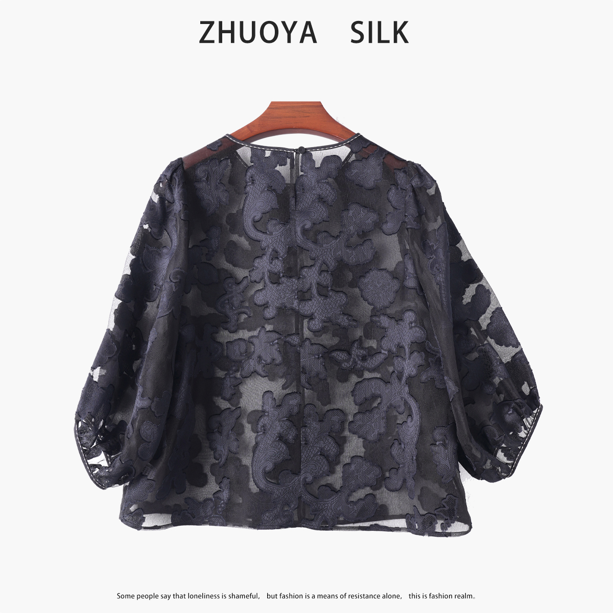 100%桑蚕丝欧根纱剪花绡上衣