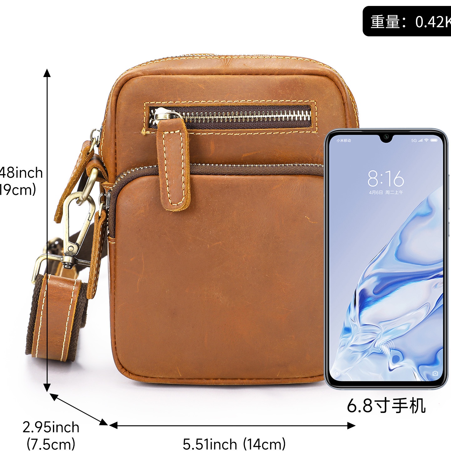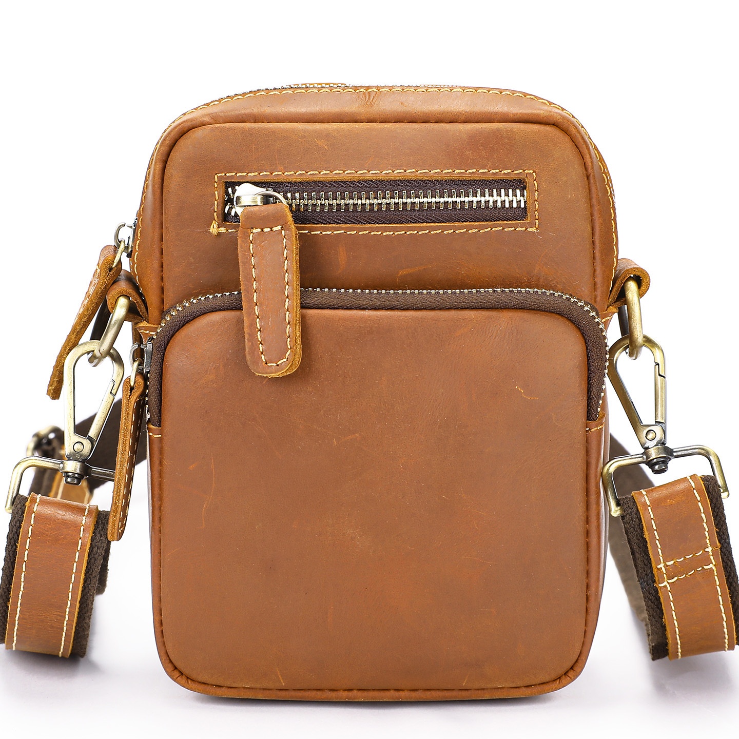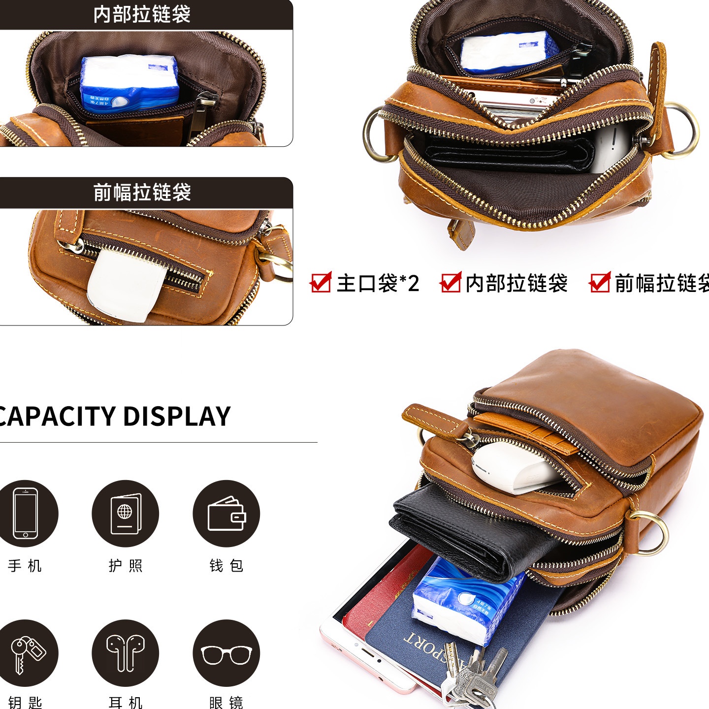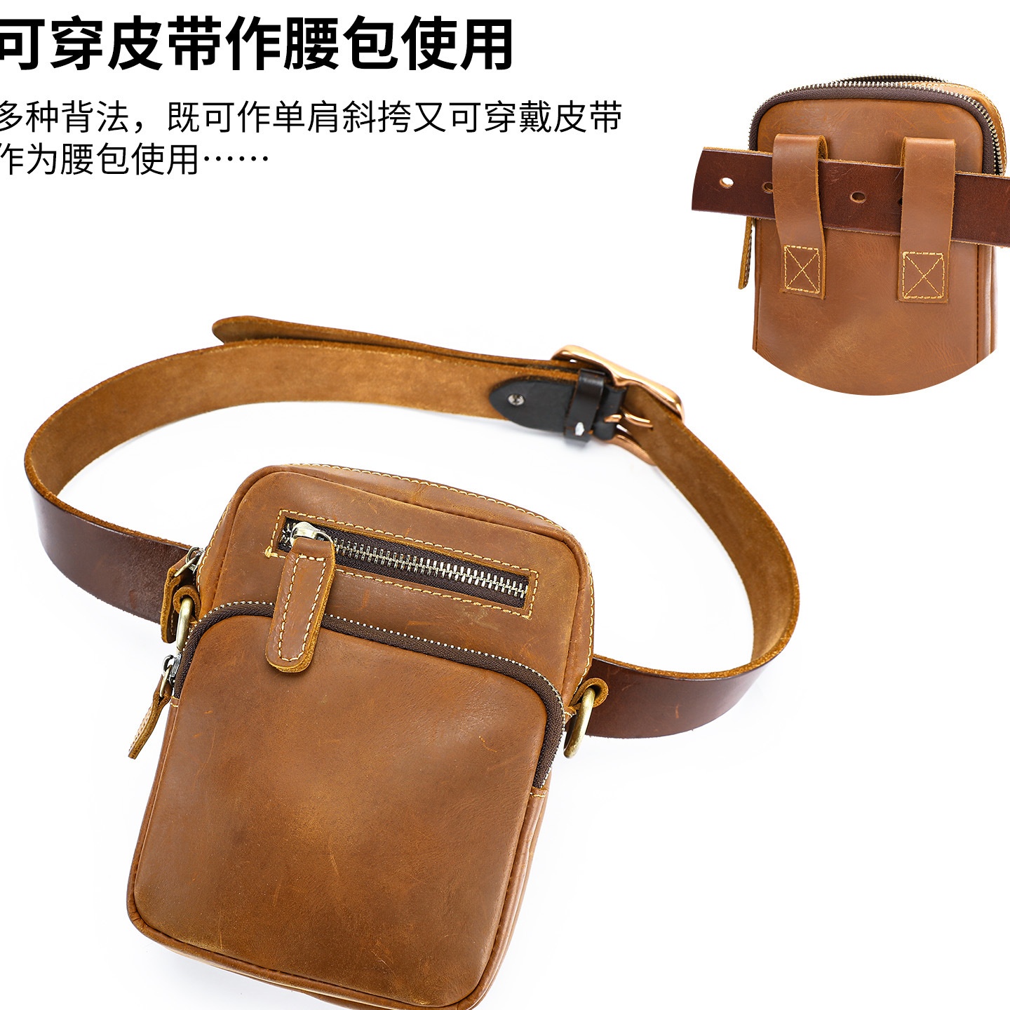 秋冬欧美复古真皮男包 头层牛皮斜挎包休闲单肩包多功能可穿皮带