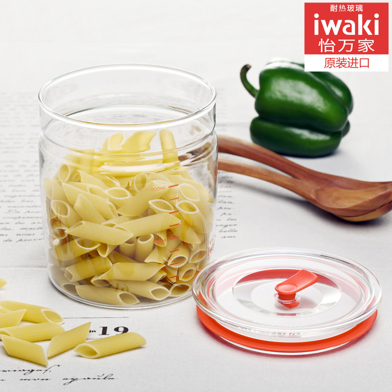 日本iwaki怡万家进口耐热奶粉罐密封罐玻璃大容量茶叶罐1升包邮