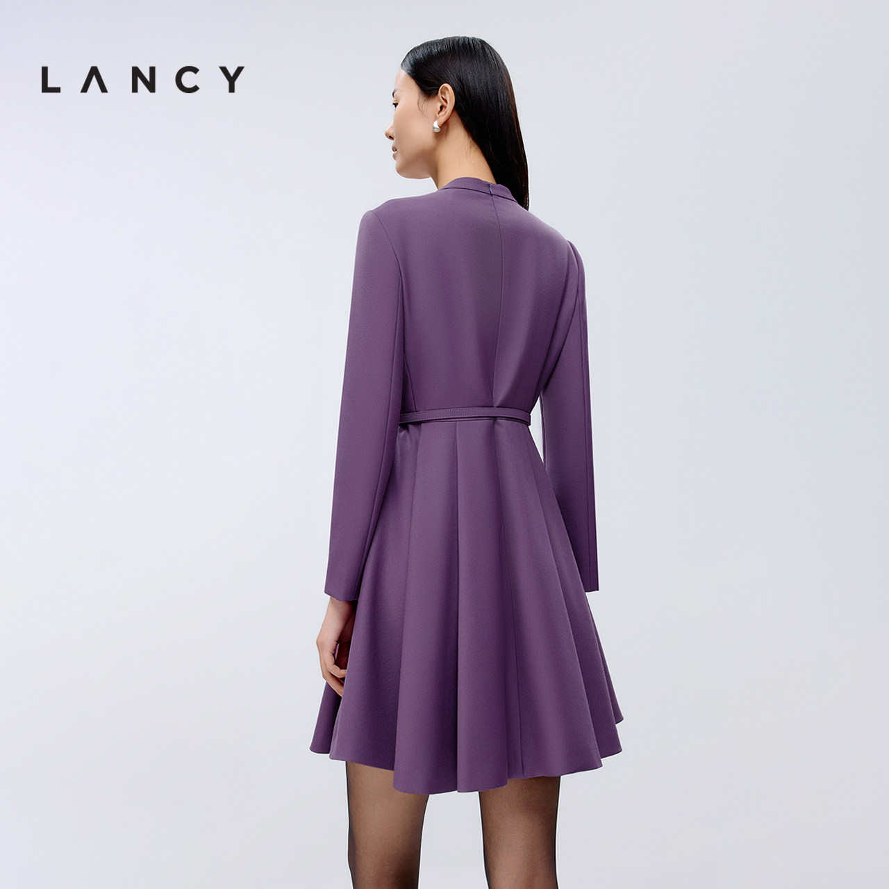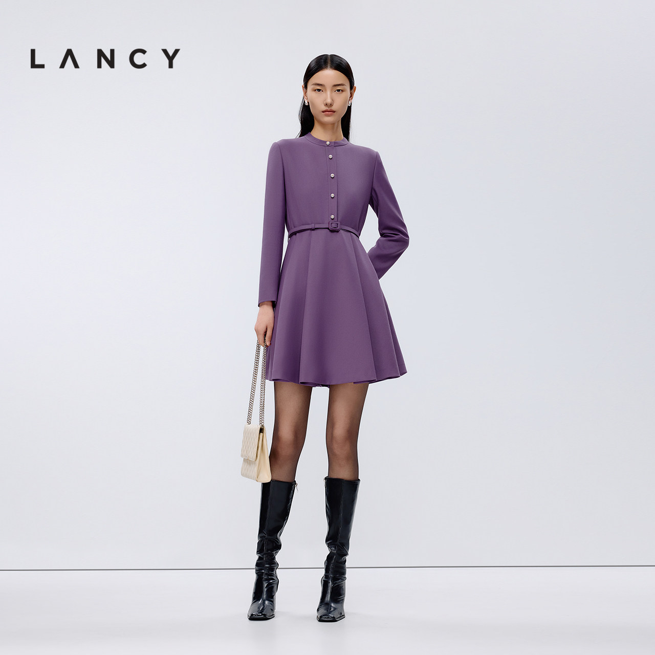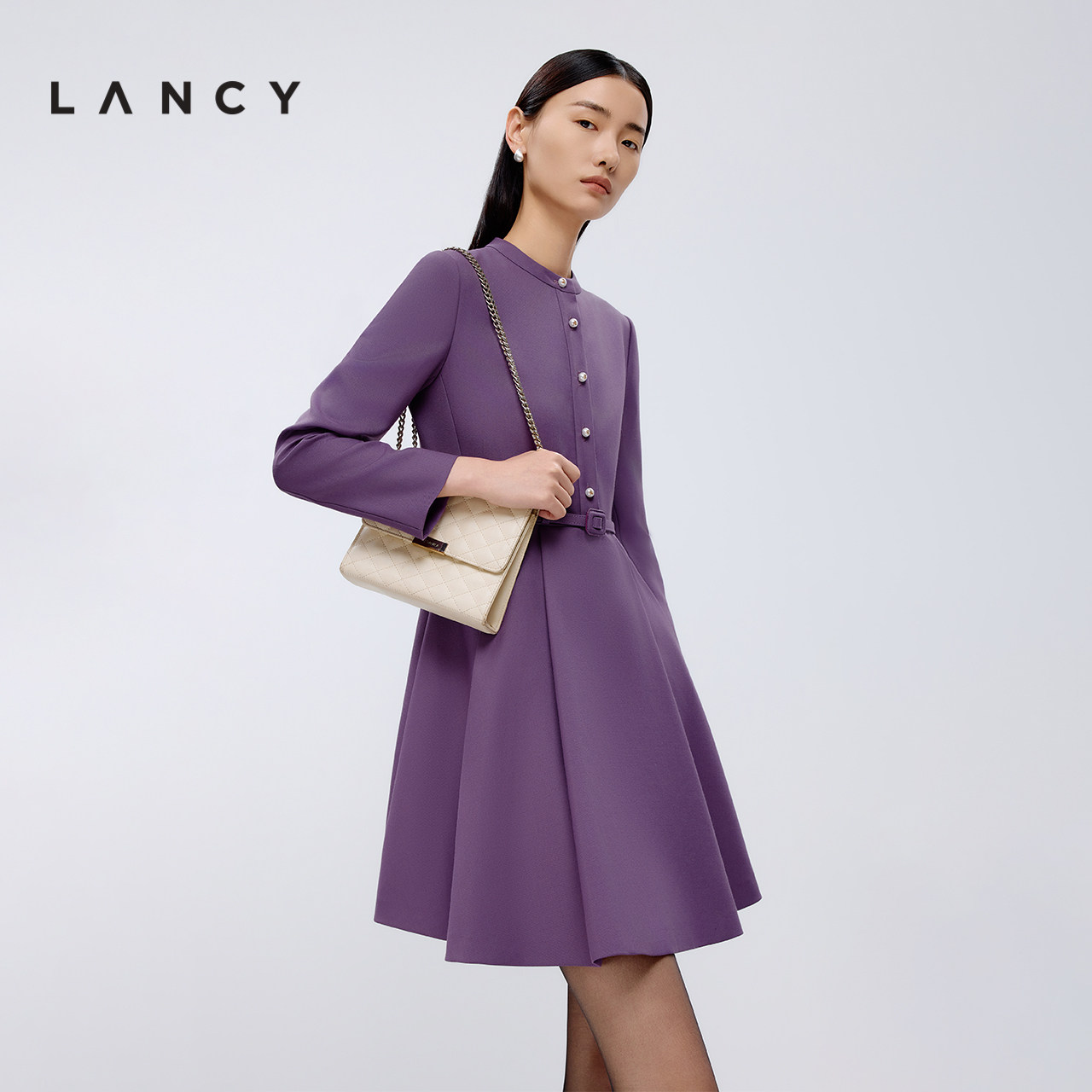 LANCY/朗姿2025春新款法式长袖修身中长款显瘦高级感收腰连衣裙女