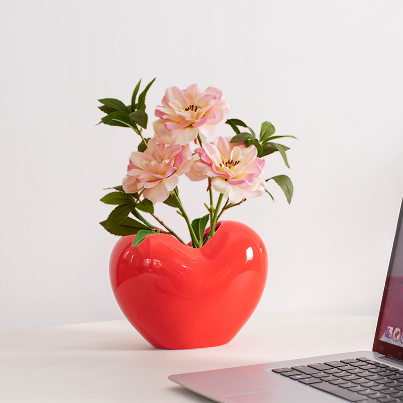 陶瓷花瓶水培器皿插花干花爱心花瓶家居客厅玄关桌面装饰创意摆件