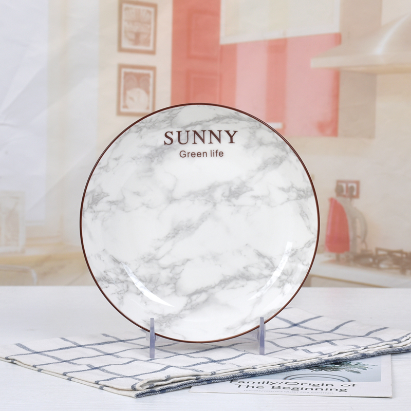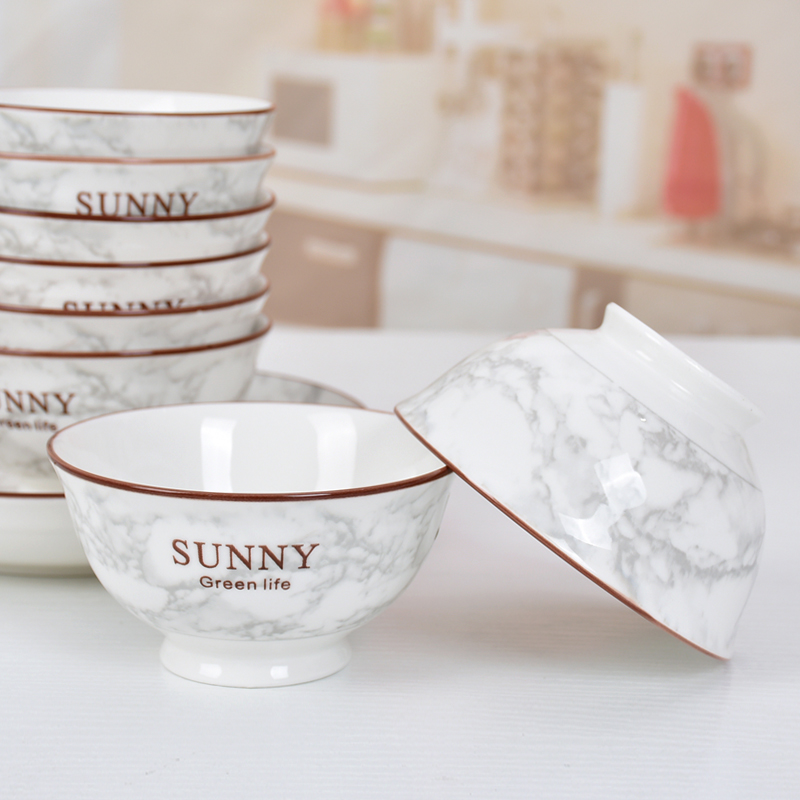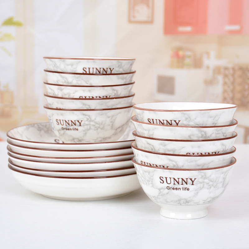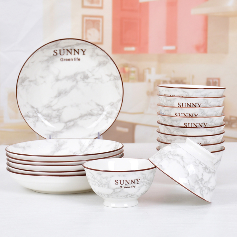 中式陶瓷碗盘套装创意家用碗碟汤碗鱼盘组合10碗10W盘大理石纹餐