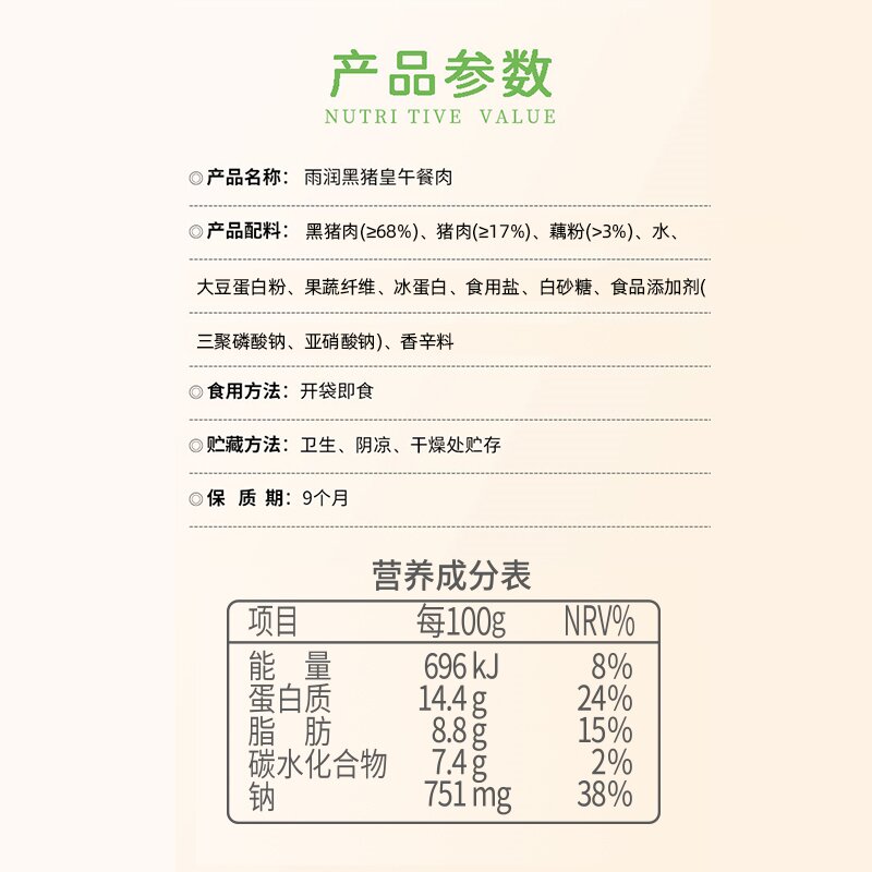 雨润黑猪皇片装午餐肉单独包装三明治开袋即食火锅食材速食零食