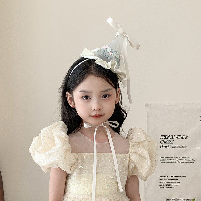 女童生日头饰儿童甜美丝带蝴蝶结生日帽发夹拍照道具立体宝宝头饰