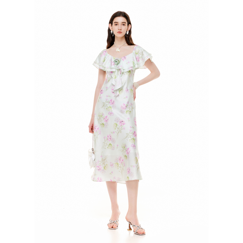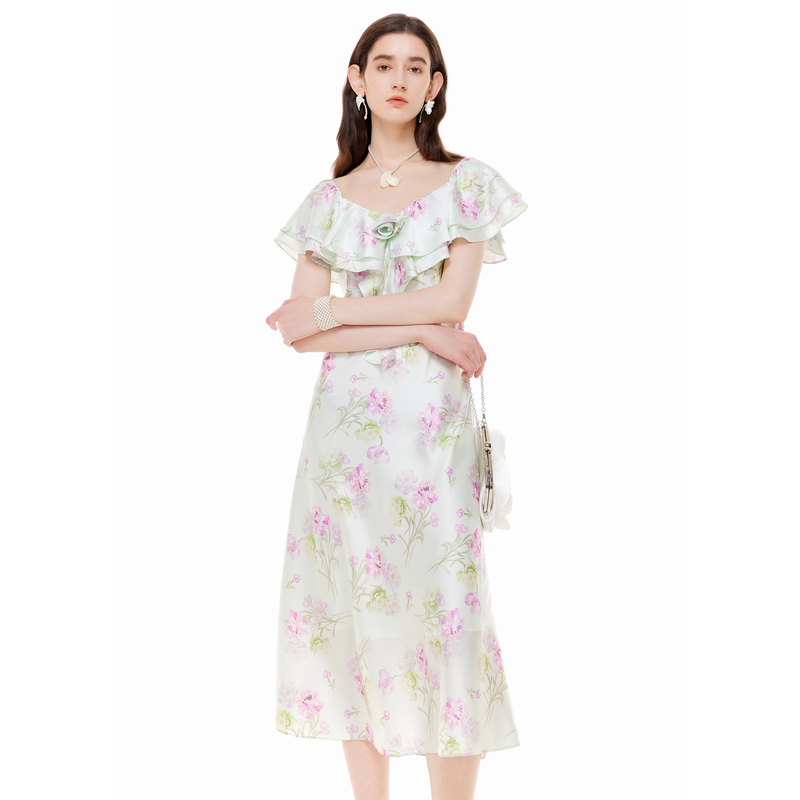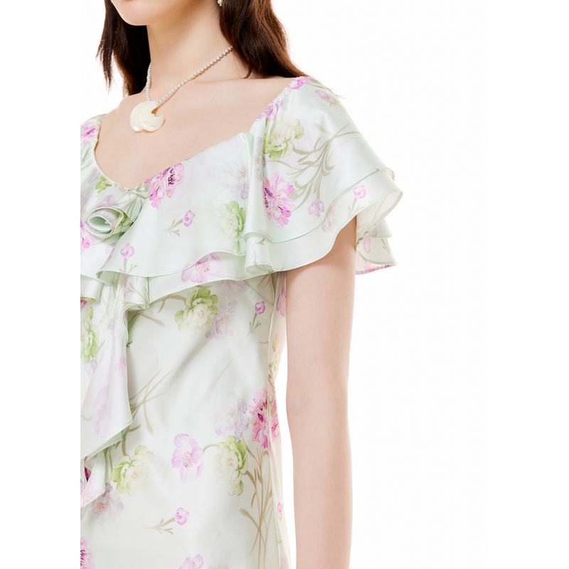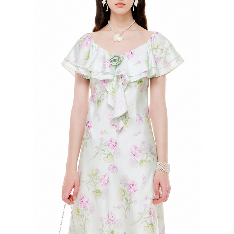 MISSCOCOON【花园度假】春夏新法式茶歇大V领荷叶边鱼尾连衣裙
