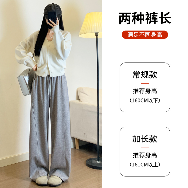 浅灰色羊绒阔腿裤女春秋季2025新款小个子高腰显瘦宽松休闲弯刀裤