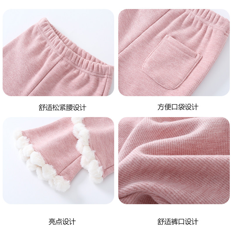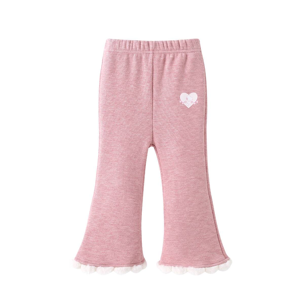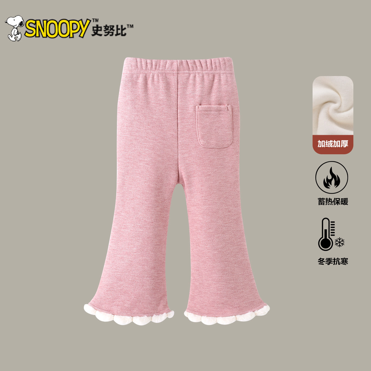 史努比女童加绒喇叭裤粉色冬季新款儿童加厚休闲裤女宝宝冬装裤子