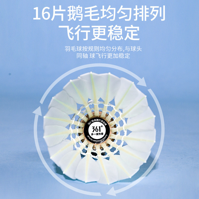 361羽毛球正品耐打王不易烂6只12只鹅毛鸭毛专业防风训练比赛用球