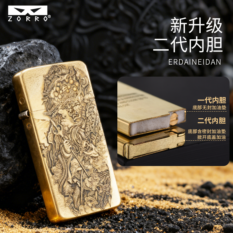 ZORRO佐罗煤油打火机超薄二代黄铜隼将军防风砂轮明火送老公男礼