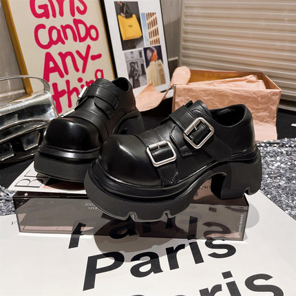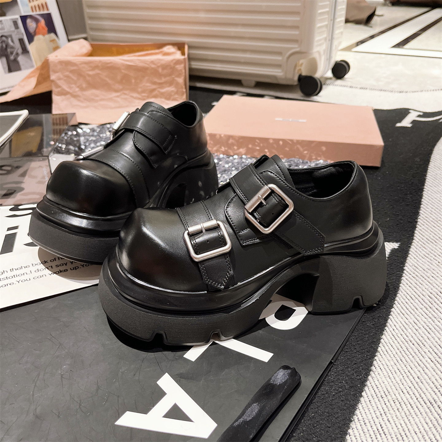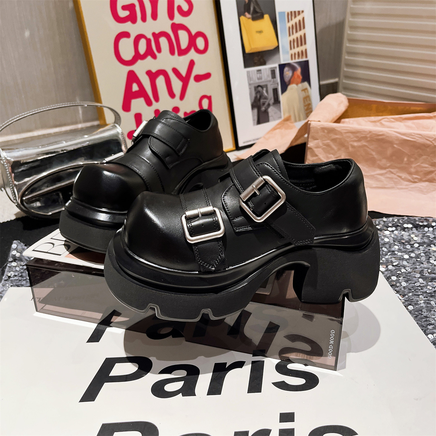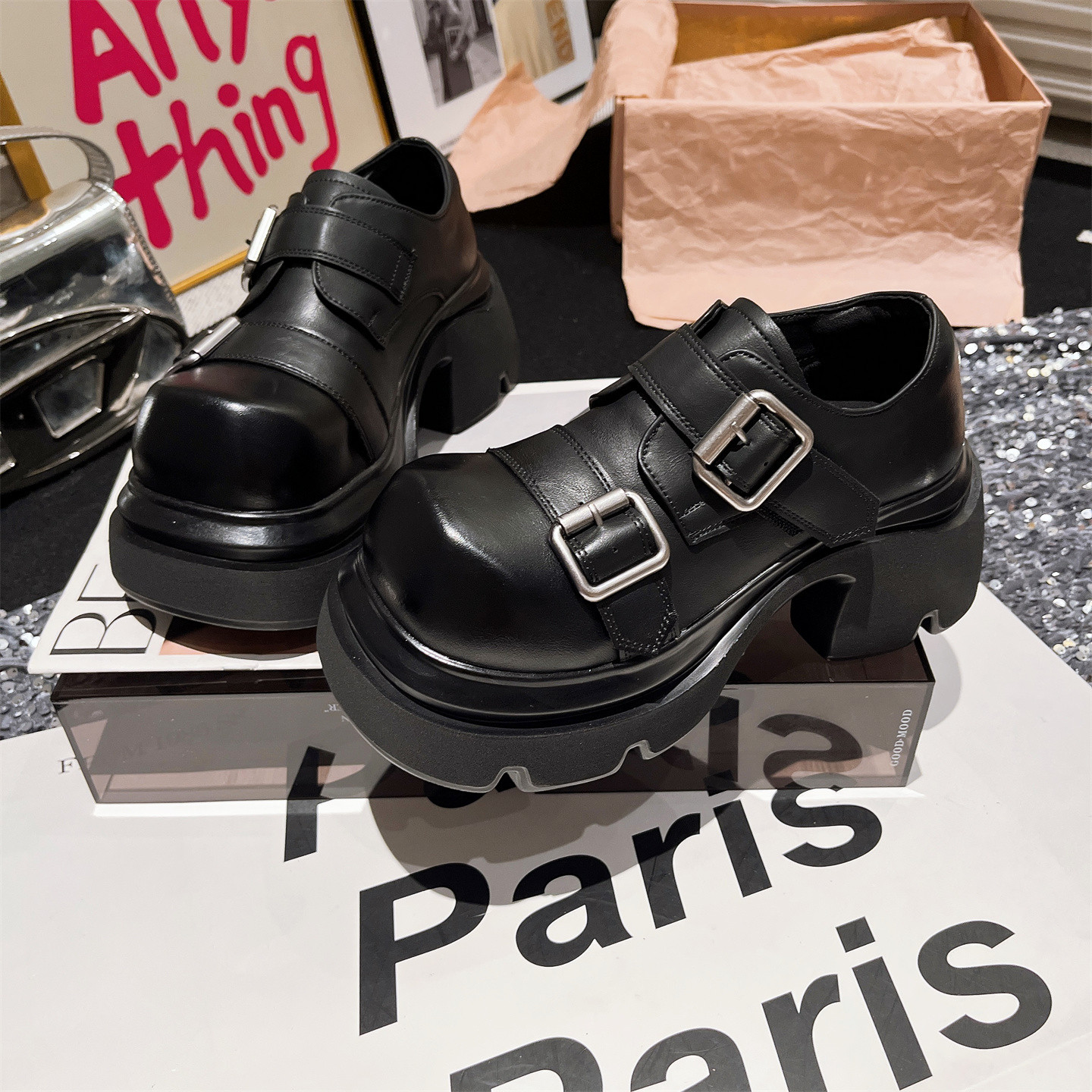 欧货真皮金属扣JK小皮鞋女2025厚底松糕乐福鞋单鞋小个子6cm女鞋