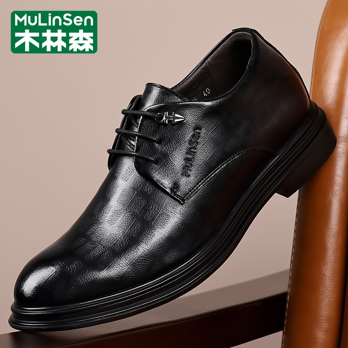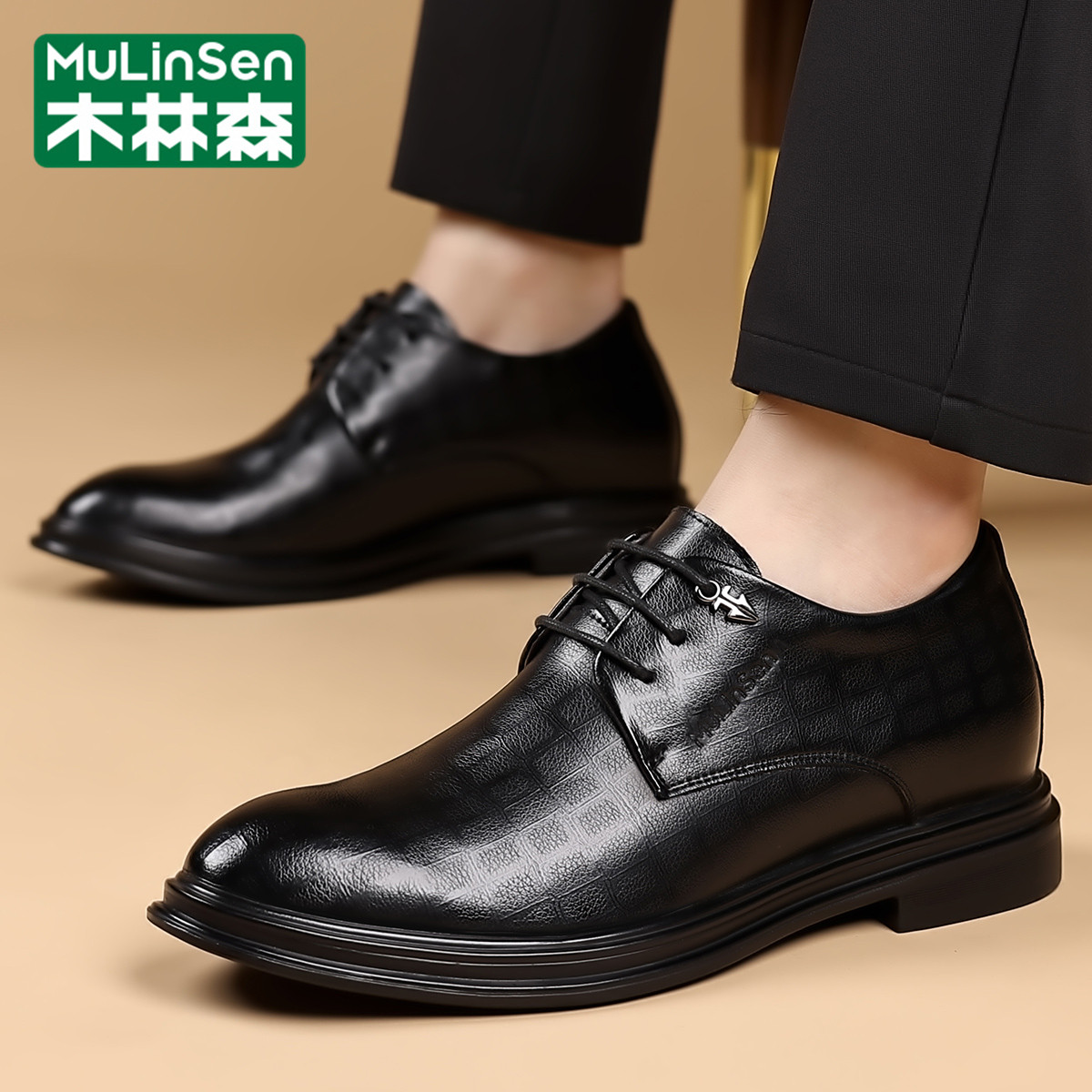 木林森皮鞋男2025新款冬季真皮商务休闲爸爸厚底增高马丁工装潮鞋