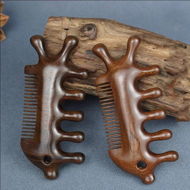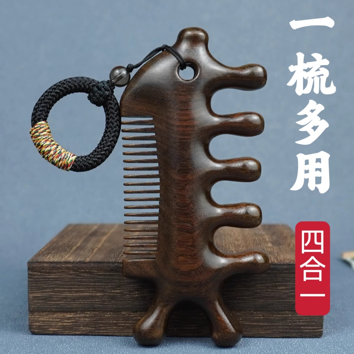 多功能按摩梳子仿檀木梳子头部经络刮痧头疗养生梳三合一加厚细齿