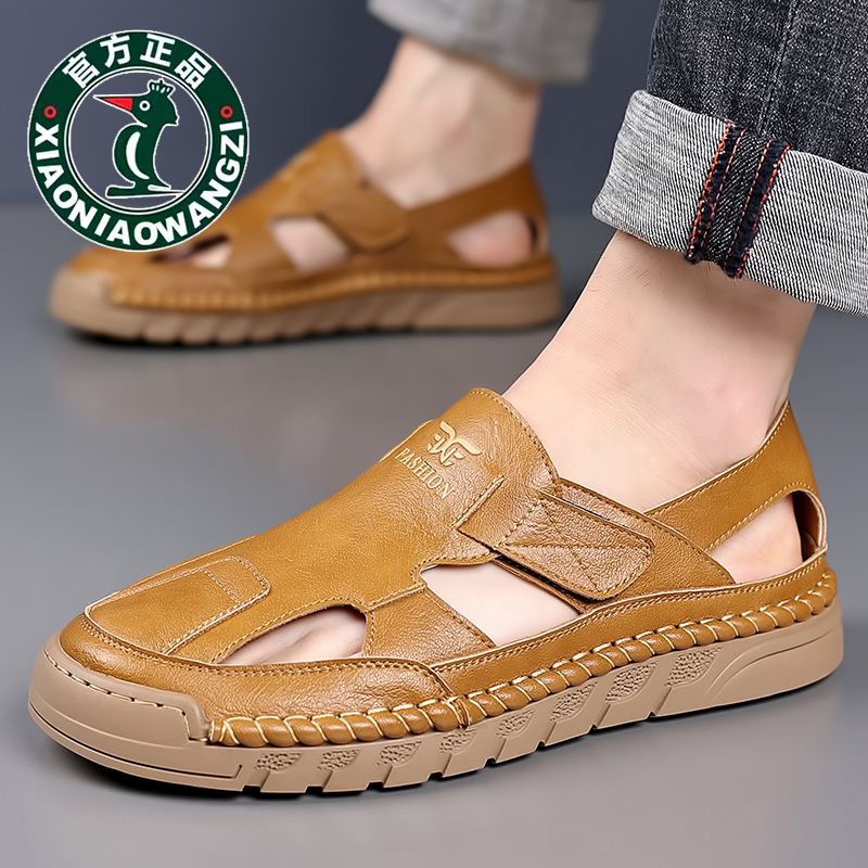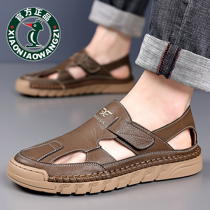 欧伦啄木鸟凉鞋夏季外穿镂空防臭洞洞鞋真皮沙滩开车休闲凉拖鞋男