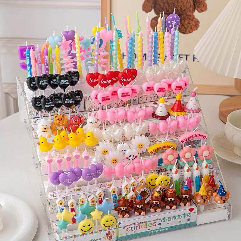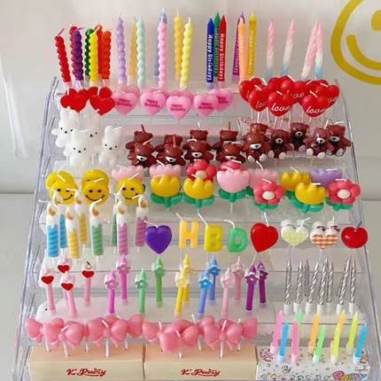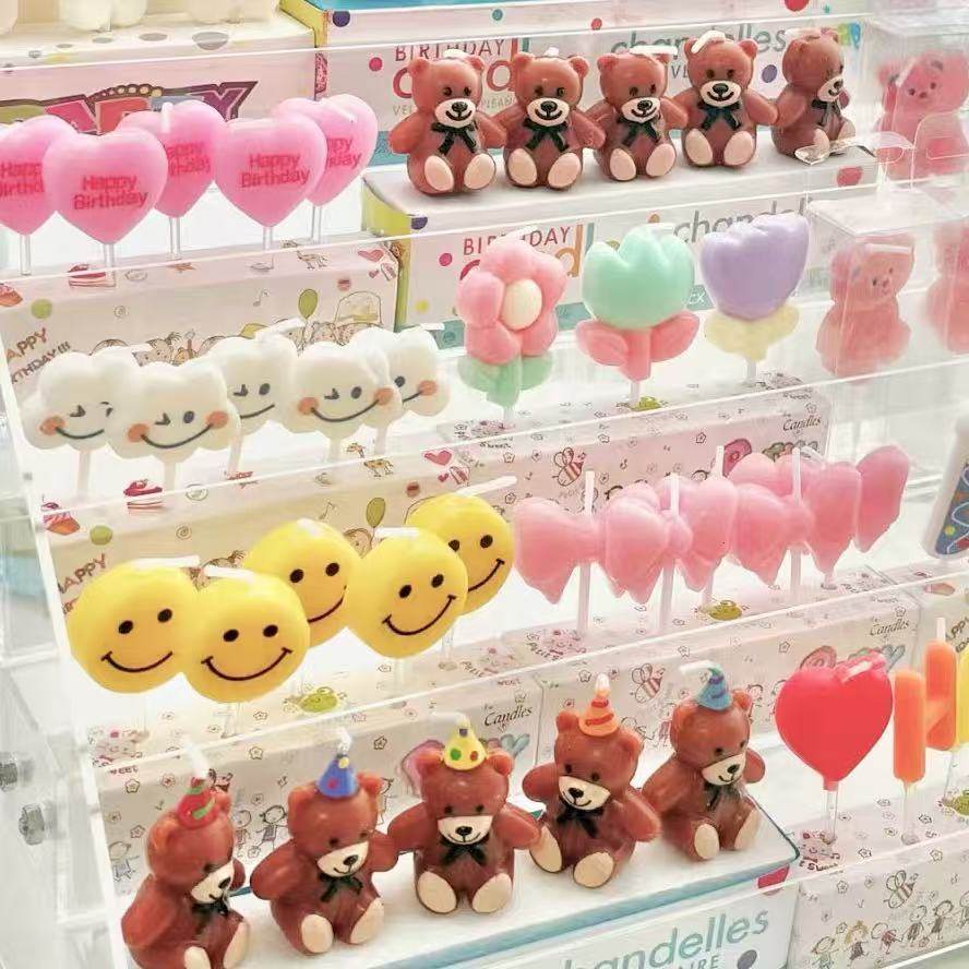ins风卡通生日蛋糕装饰蜡烛花朵派对帽小熊笑脸爱心儿童生日蜡烛