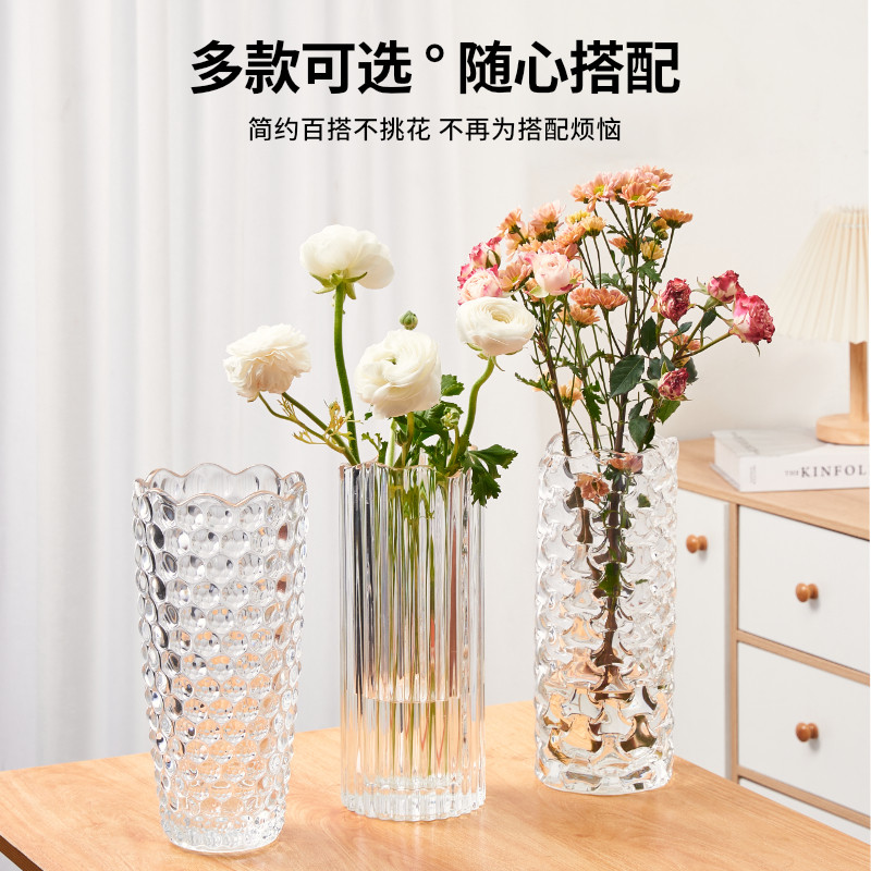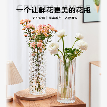 朗旭玻璃客厅北欧透明富贵竹百合玫瑰水养培插花大口径花瓶摆件