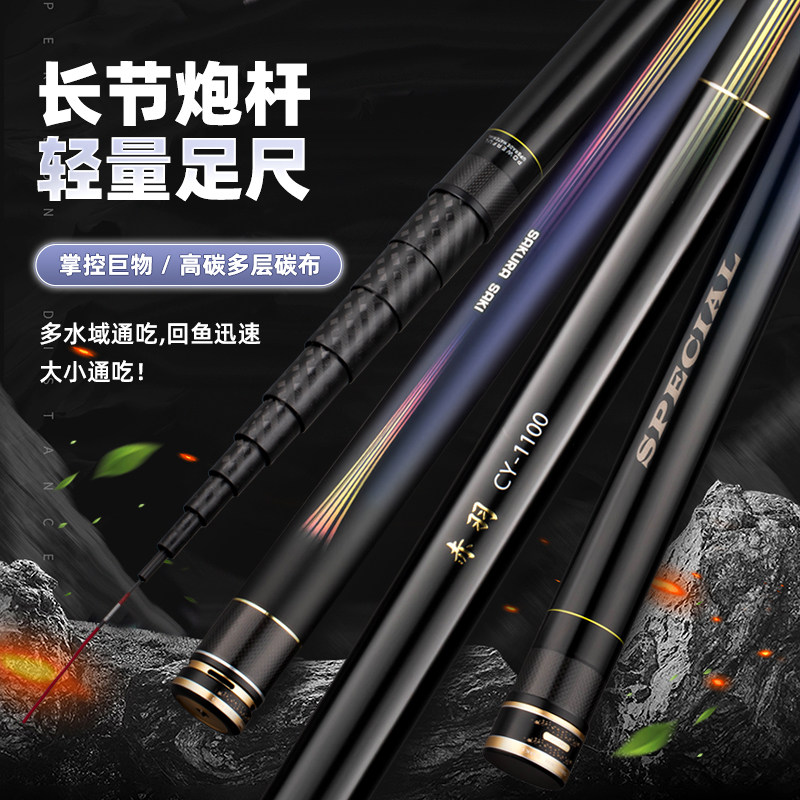 赤羽2代短节炮竿日本进口碳素鱼竿10 11 12米超轻钓鱼竿19调手竿