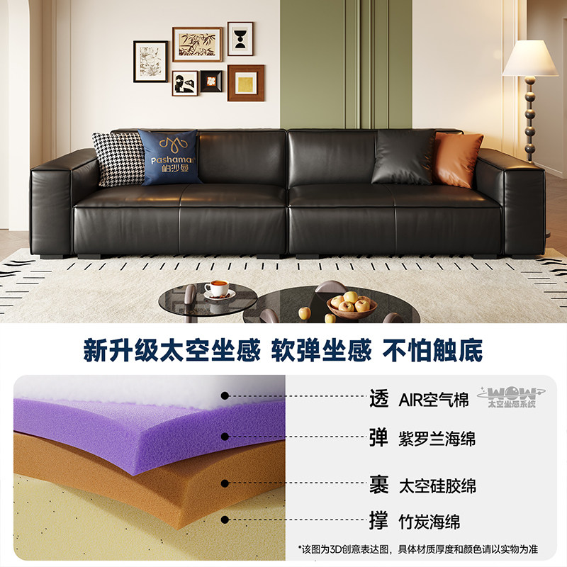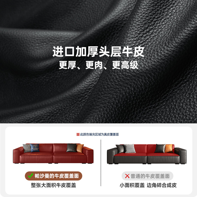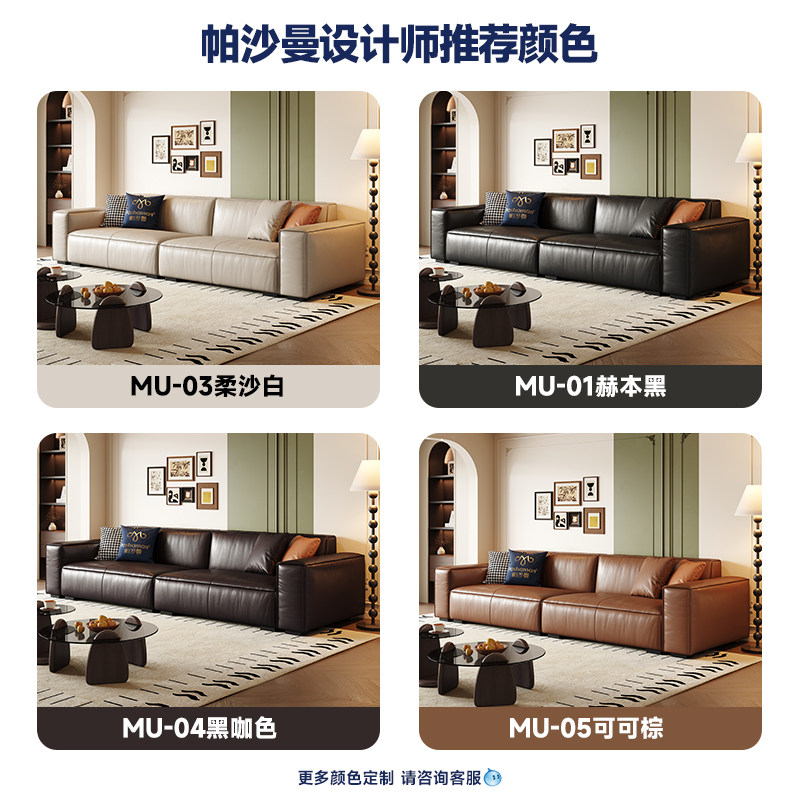 帕沙曼豆腐块真皮沙发复古风简约