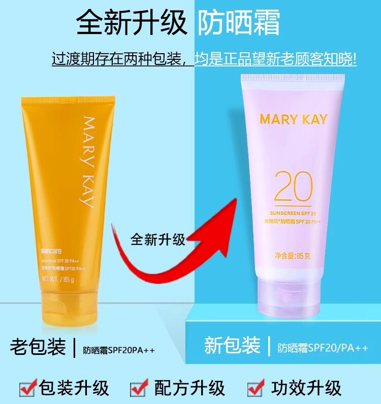 玫琳凯防晒霜85gSPF20/PA++隔离紫外线清爽透气耐汗物理防晒霜