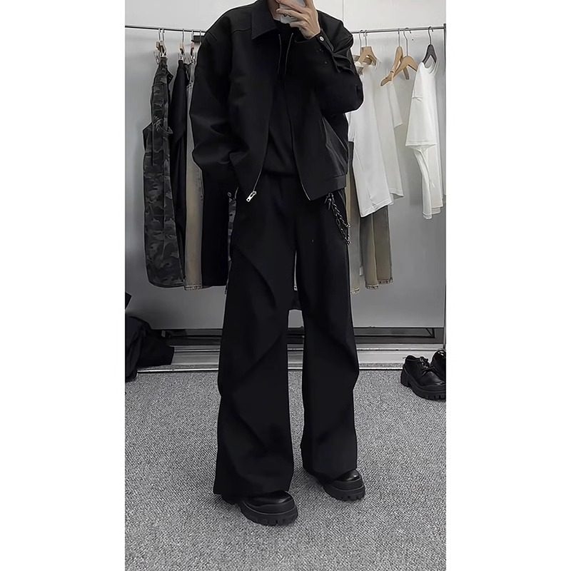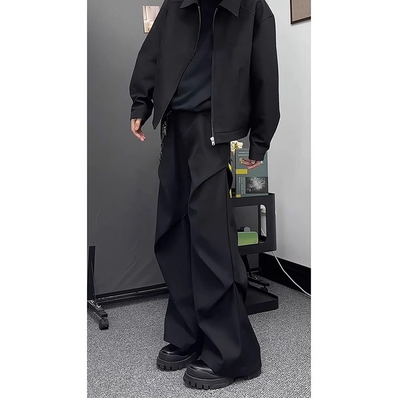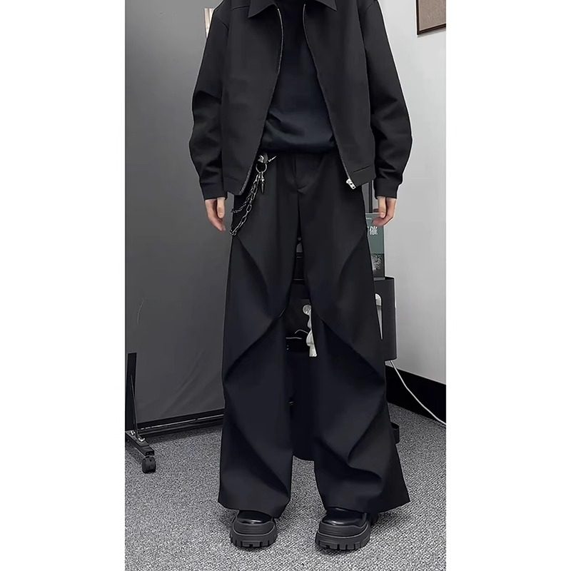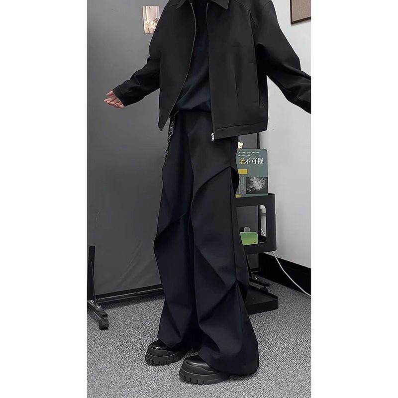 特大码300斤高级感微喇西裤男春秋垂感褶皱工装裤子阔腿休闲长裤2