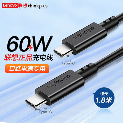 联想thinkplus口红电源转接线 type-c快充线充电60W数据线100W Type-C转Type-C电源线-1.8米/1米USB-C转USB-C