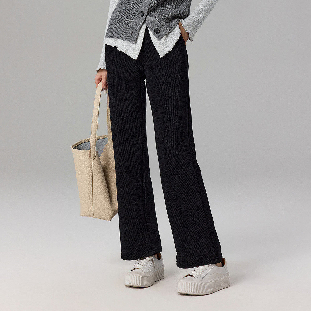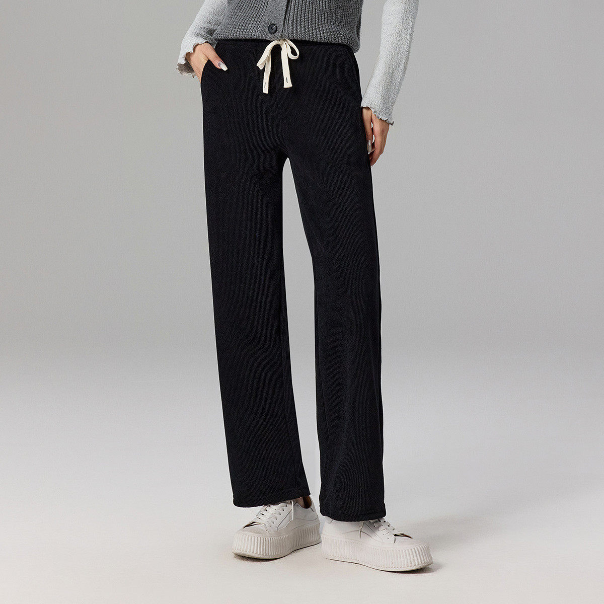 茵曼2025冬季新款加绒加厚休闲裤子长女宽松九分直筒垂感高腰显瘦