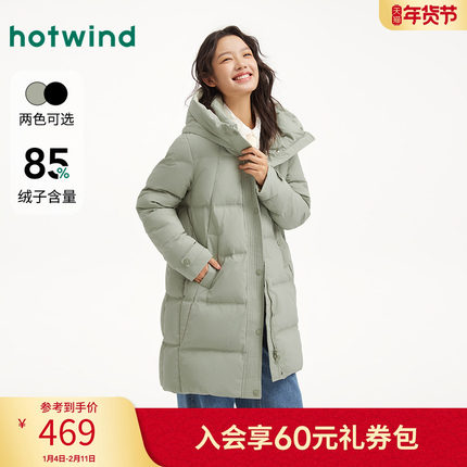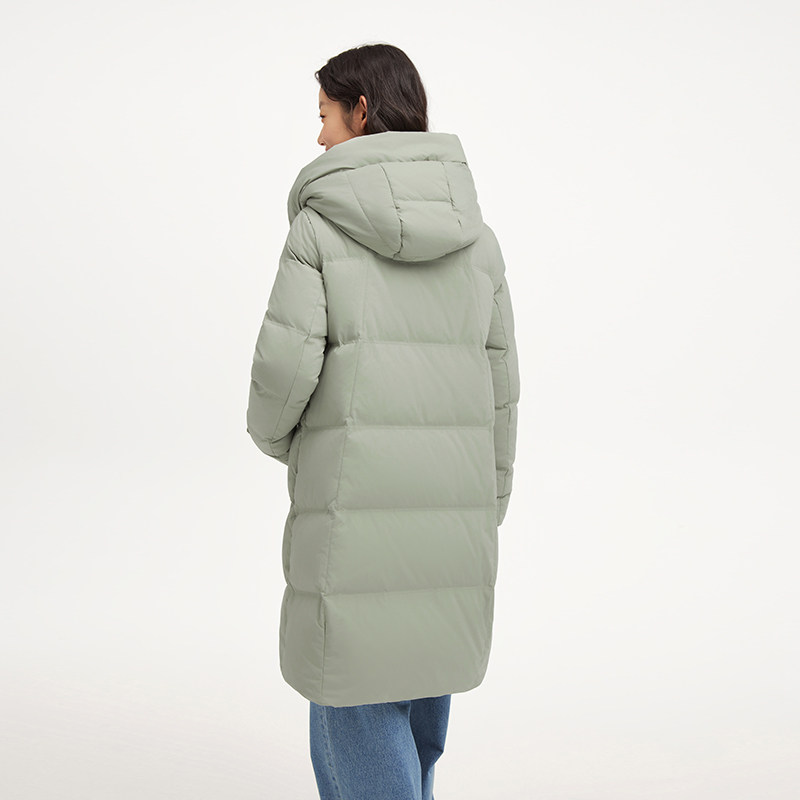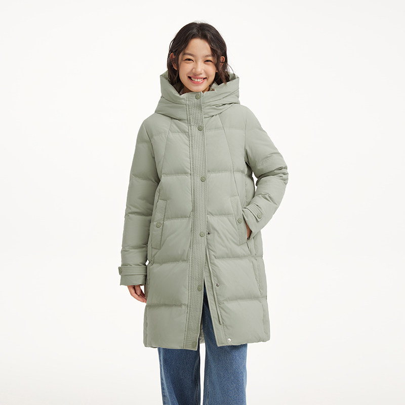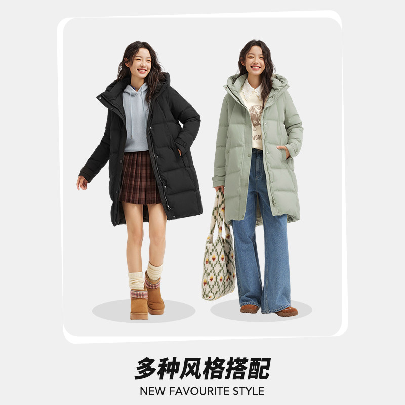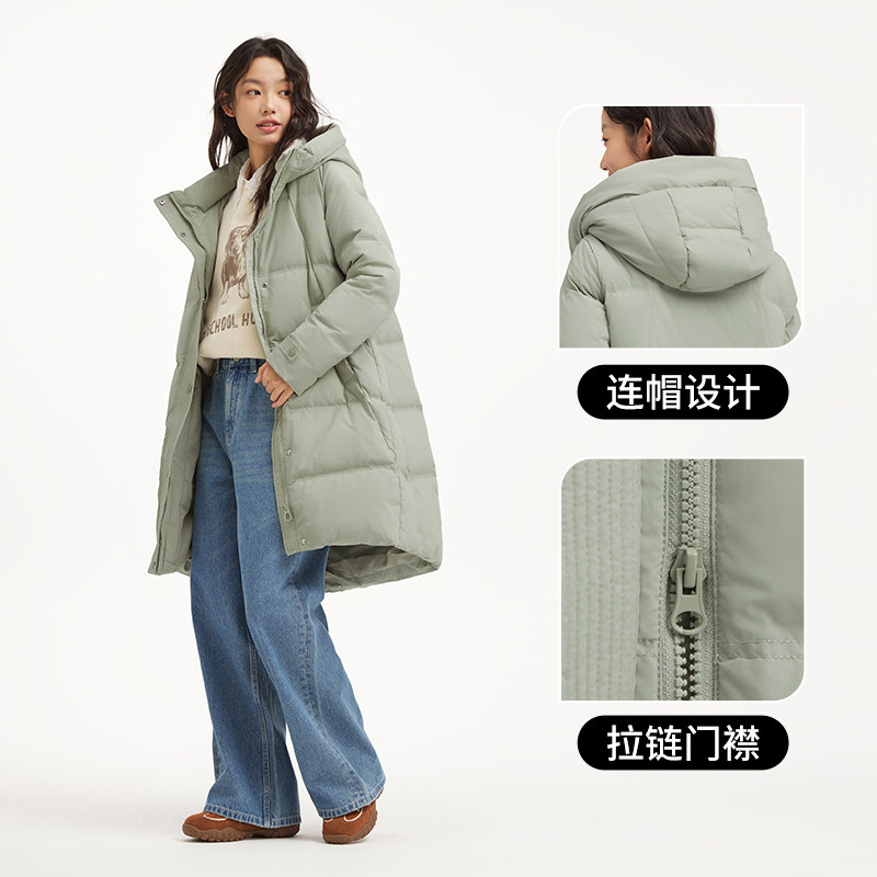 热风2025年冬季新款女士休闲连帽长款羽绒服